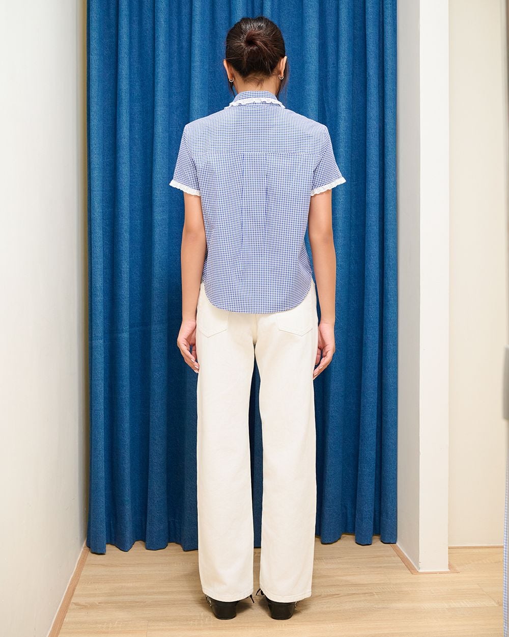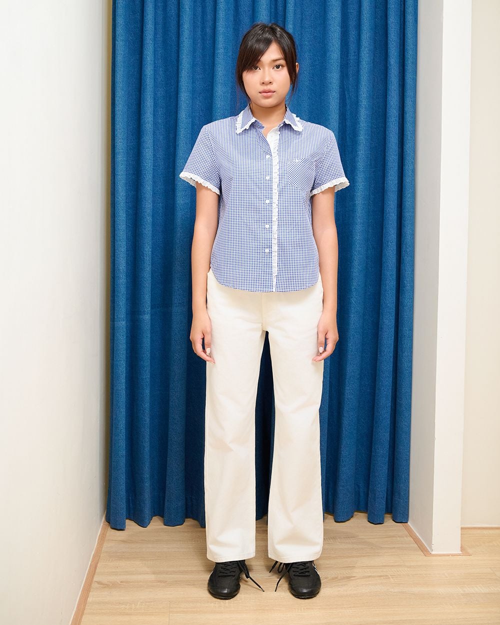 - Chi tiết: viền ren trắng tinh tế ở cổ và tay áo ngắn