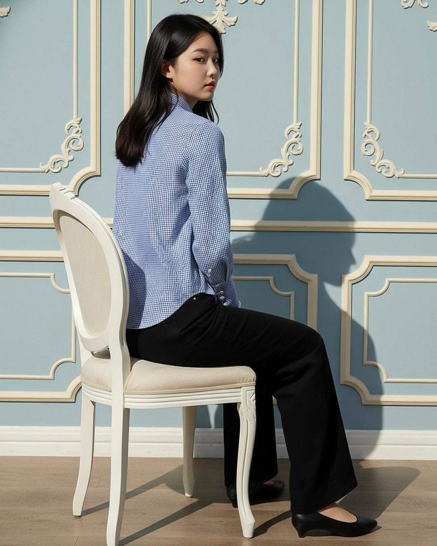 - Chi tiết: viền ren trắng tinh tế ở dọc nút và tay áo