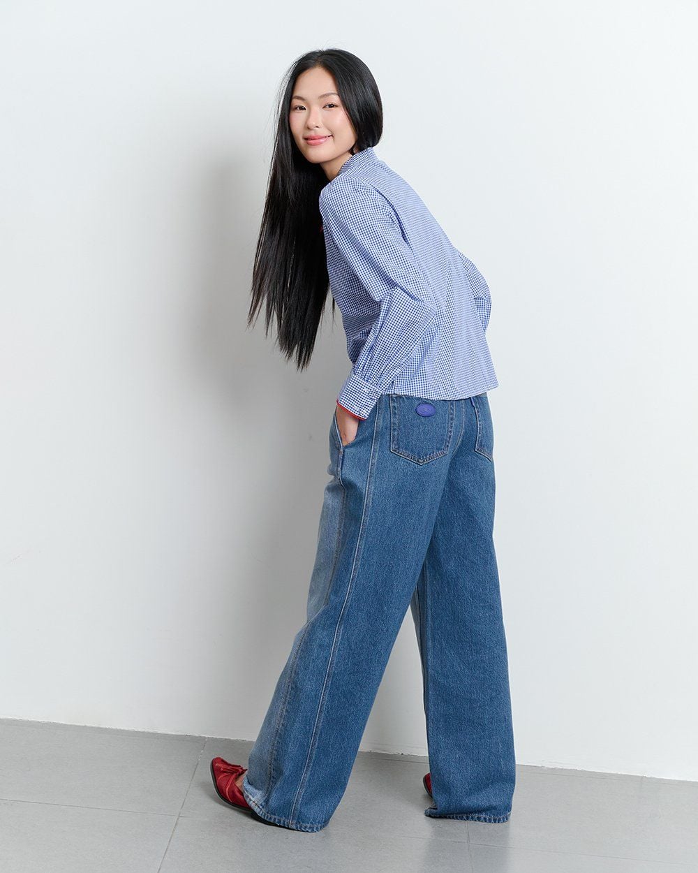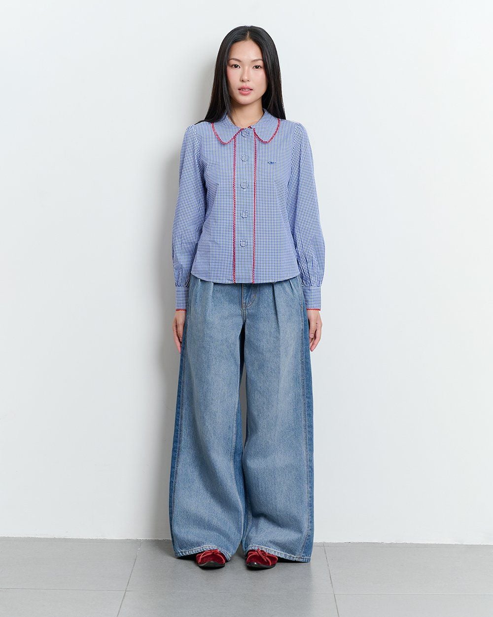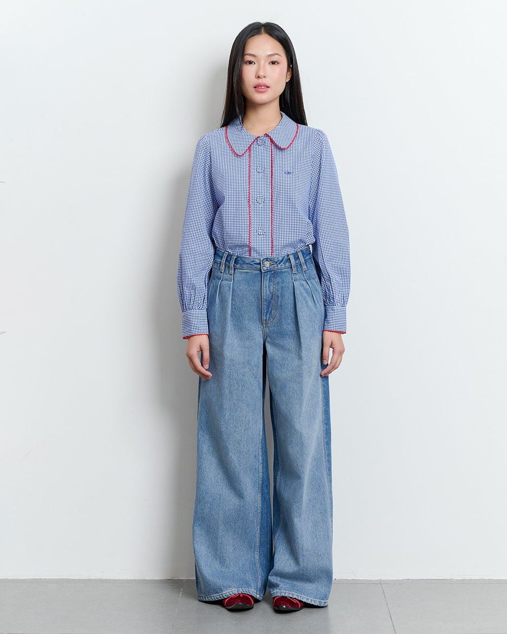 - Thiết kế: Áo tay dài phồng, cổ peter pan, nút bọc phong cách vintage