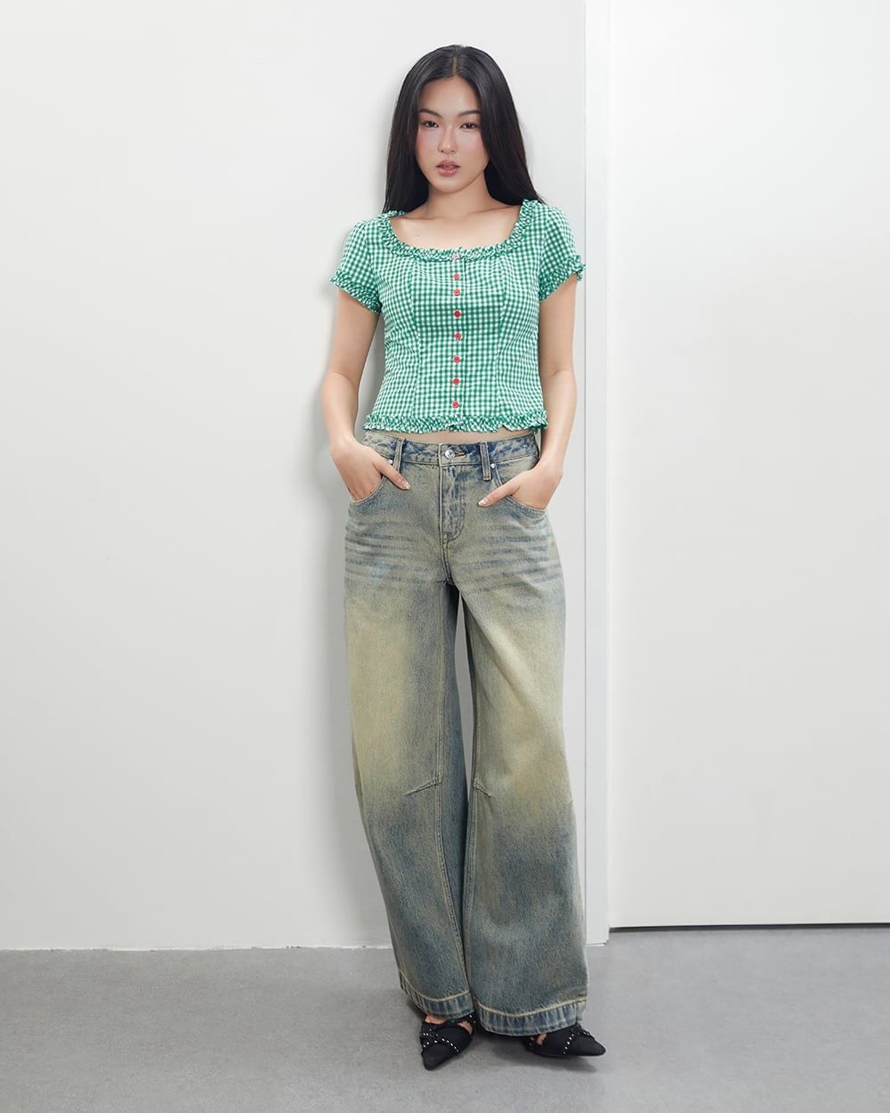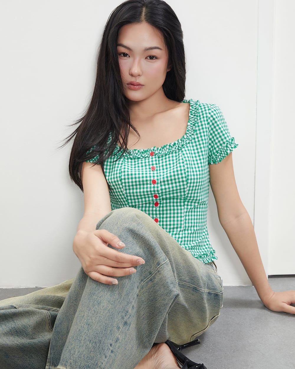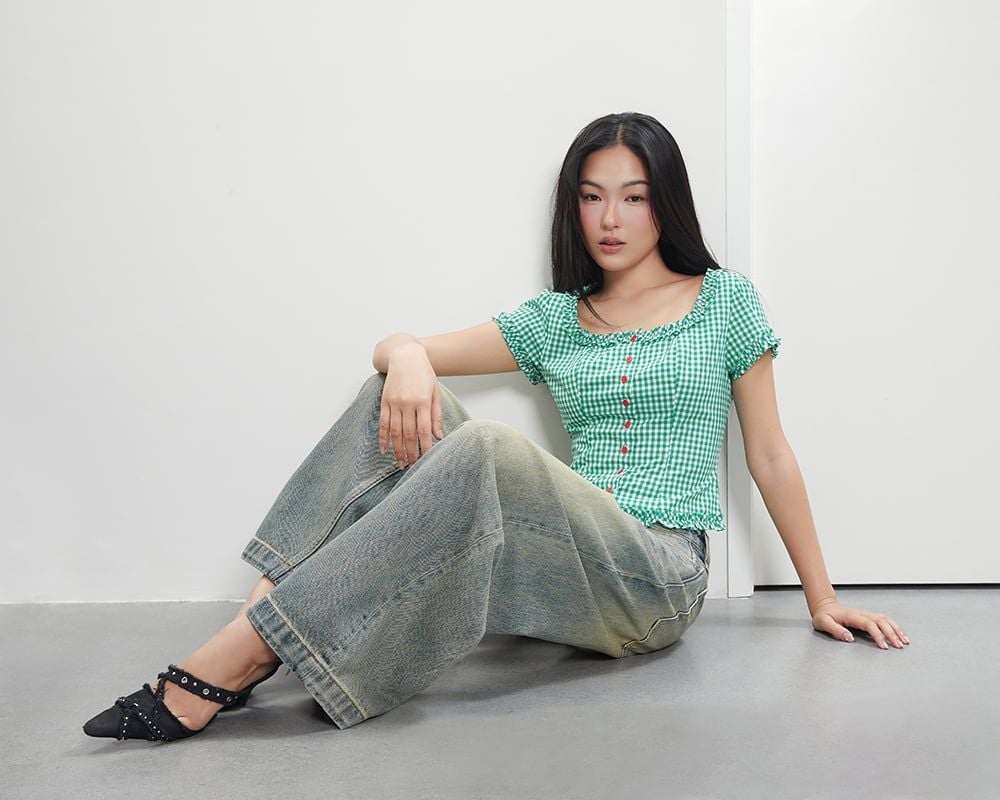 Áo Florence Top - Green Gingham