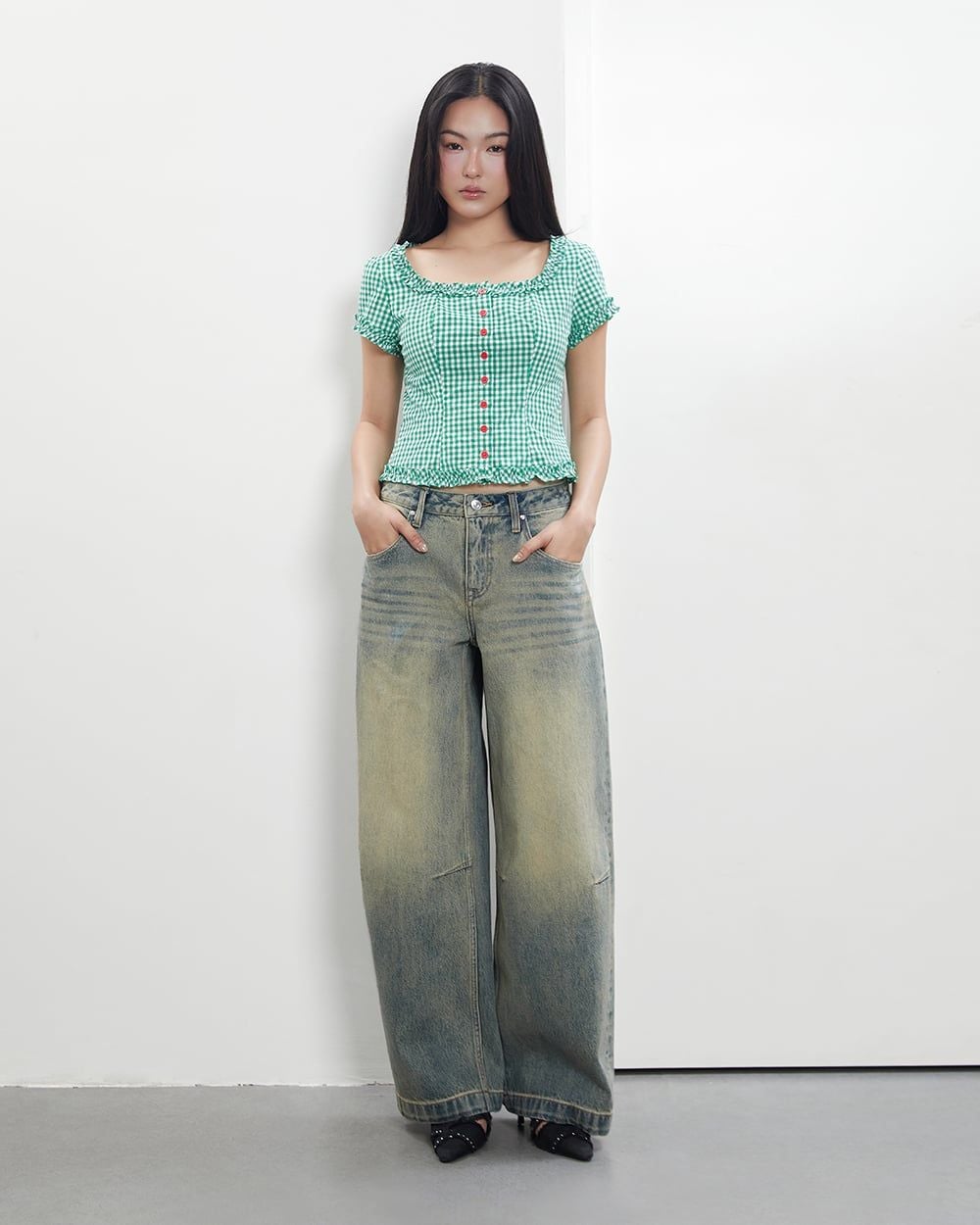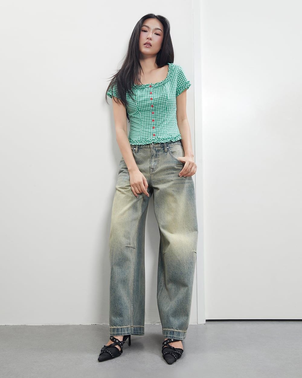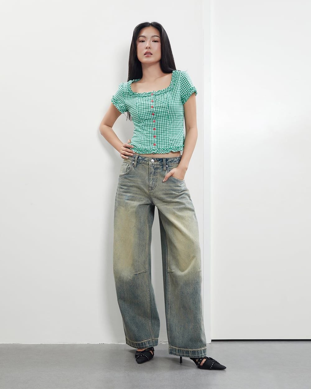 Áo Florence Top - Green Gingham