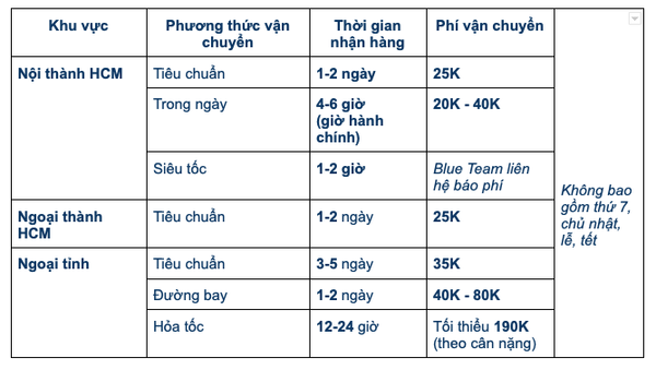 - Tuy nhiên, vào dịp sale, lễ, tết lượng đơn hàng bị quá tải, nên thời gian giao hàng có thể lâu hơn dự kiến, mong bạn thông cảm cho Blue Team nhé!