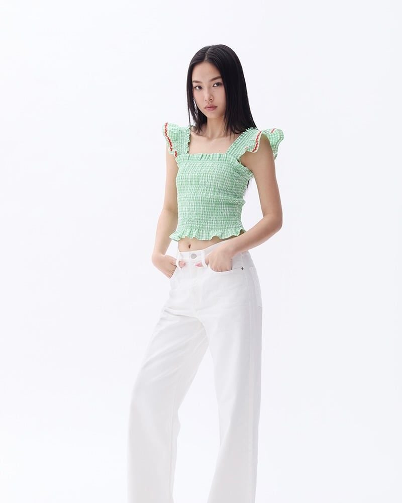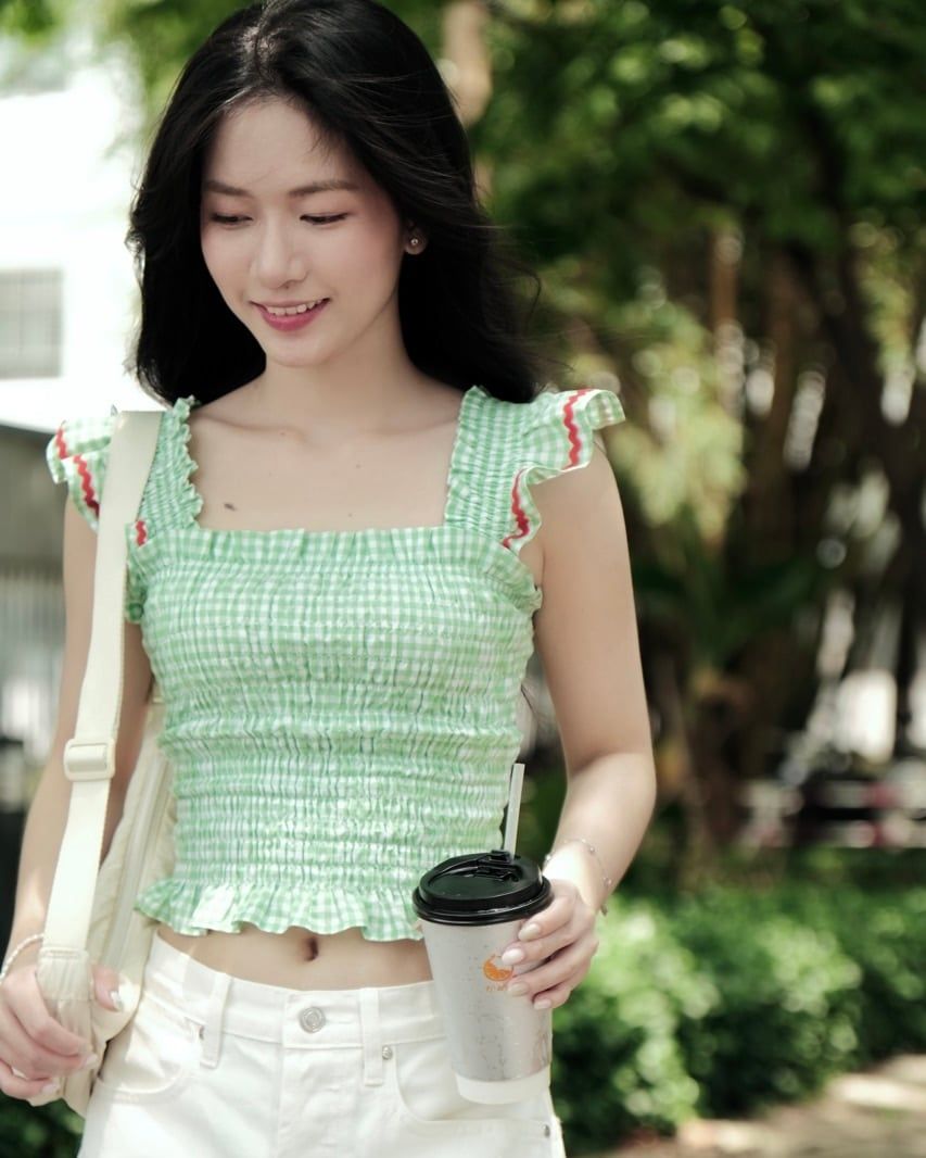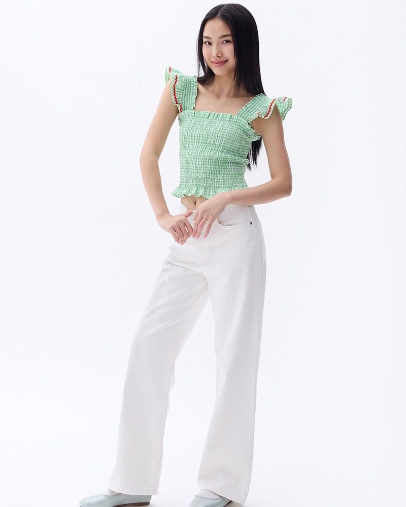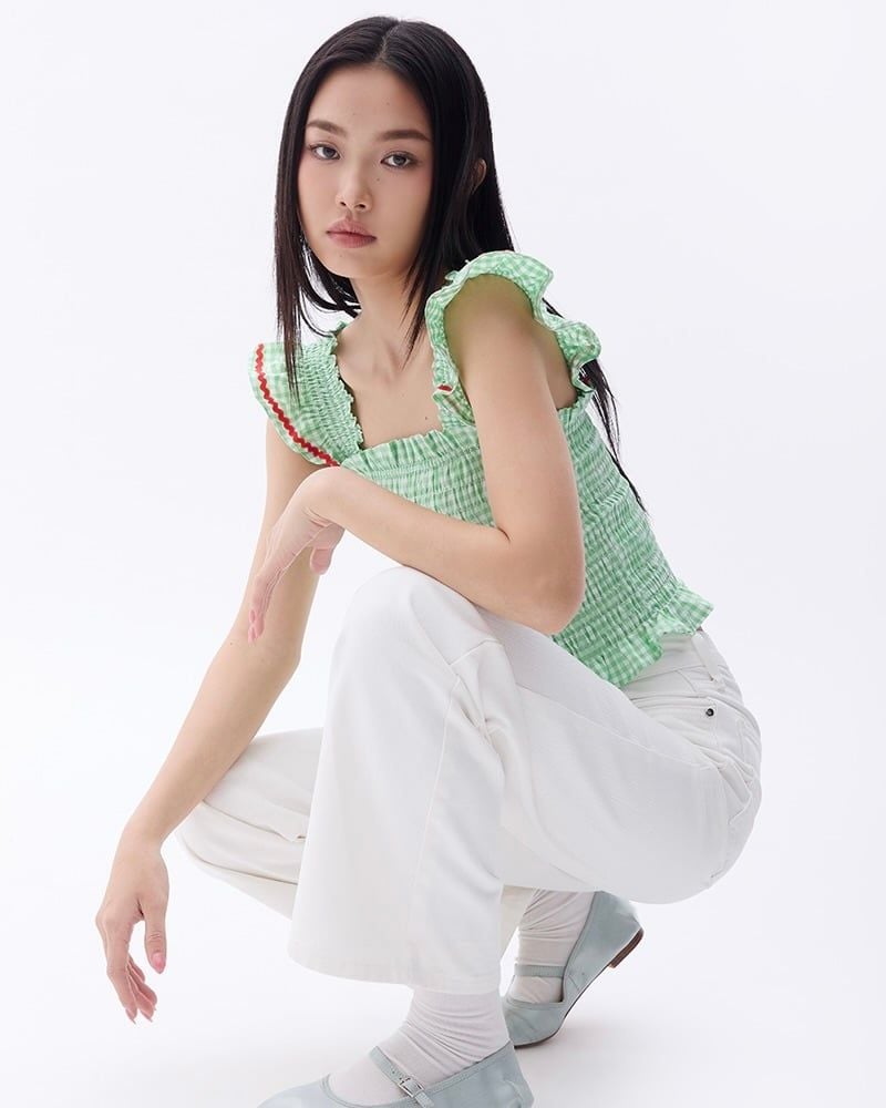Áo Girly Top - Pearl Green Gingham ZigZag