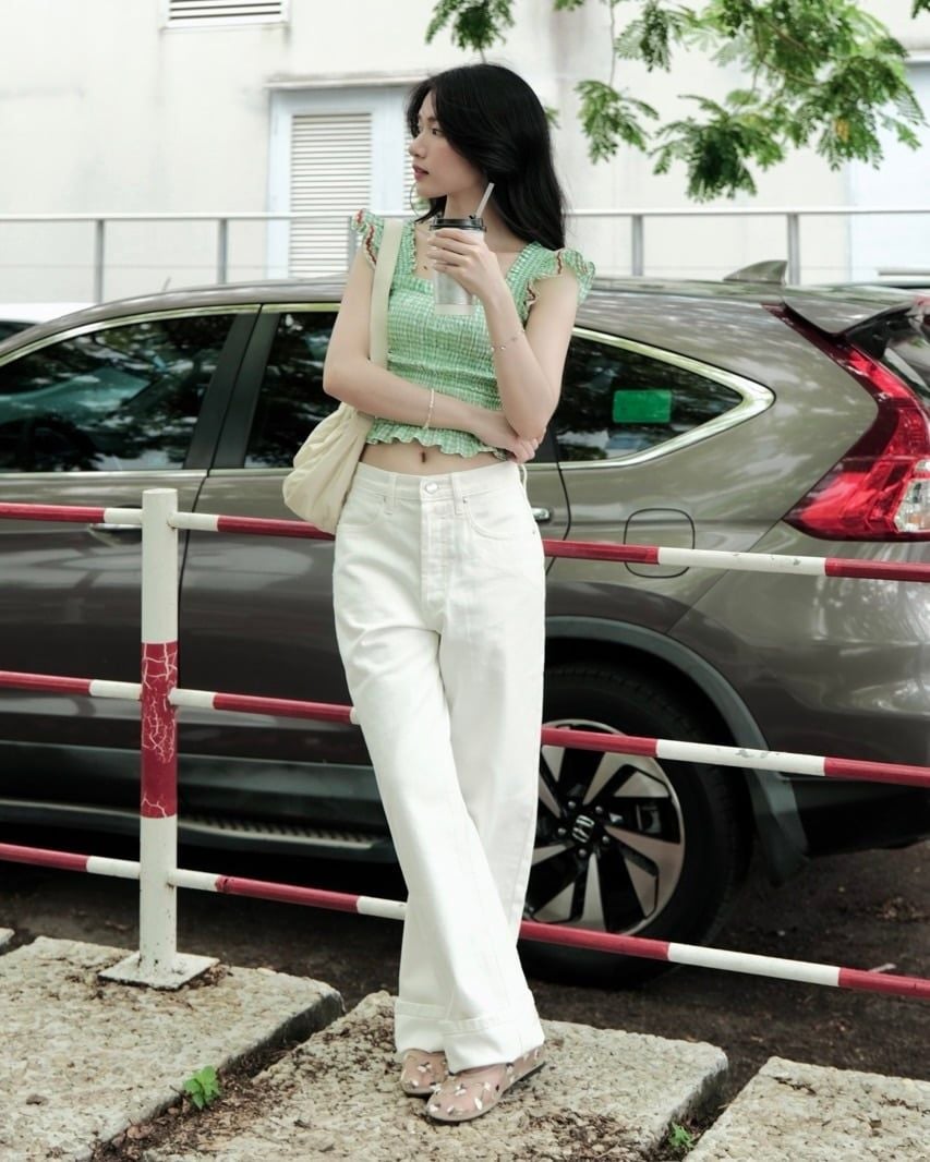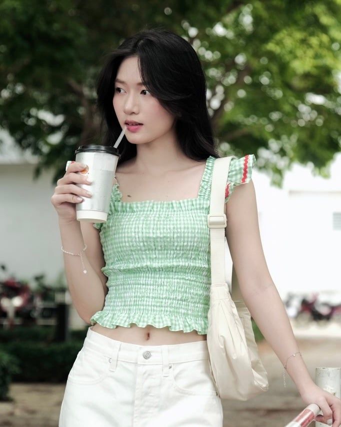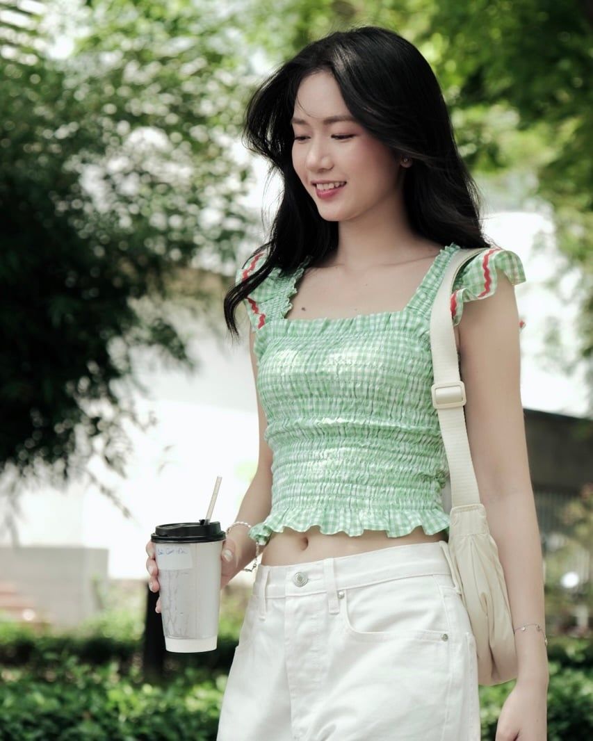 - Thiết kế: Áo cánh tiên, thân áo smocking ôm dáng