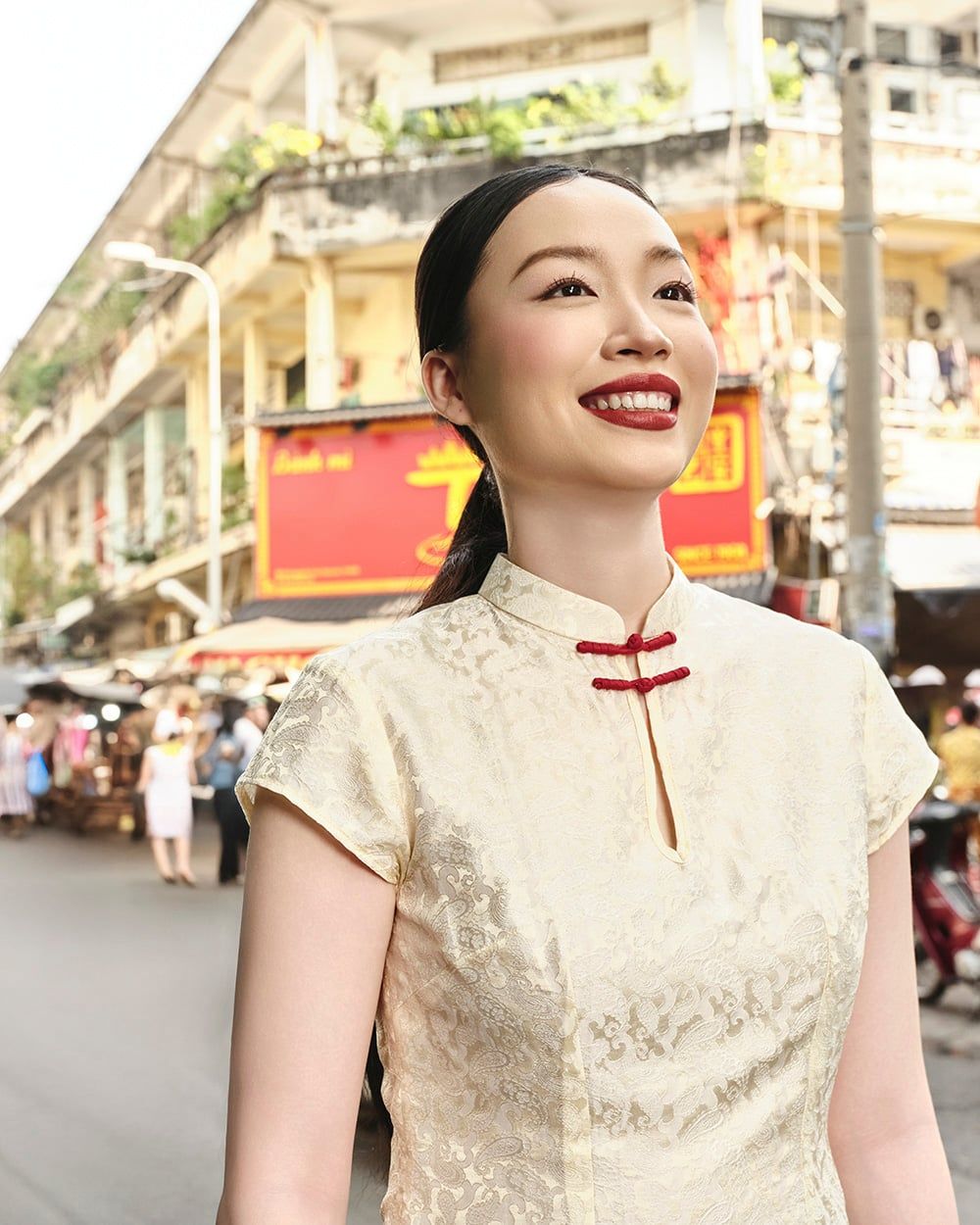 - Thiết kế: Áo tay tay ngắn, cổ tàu