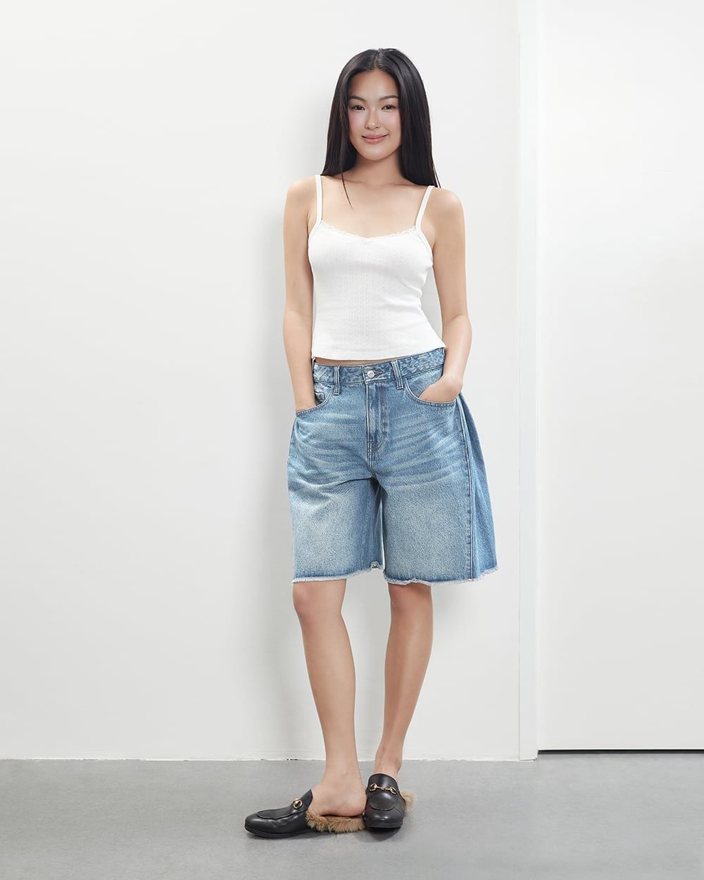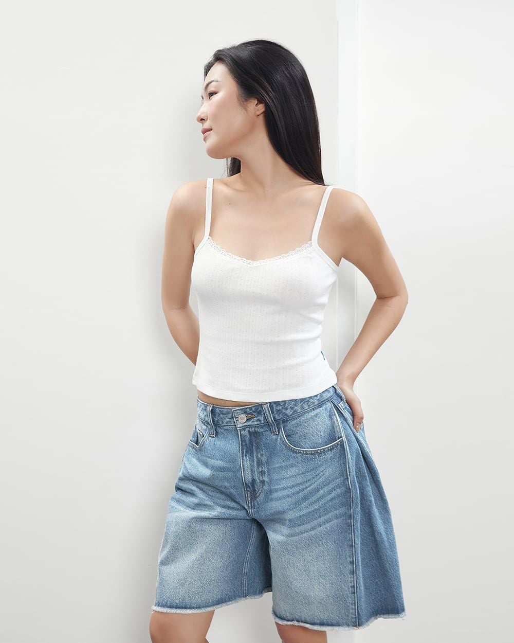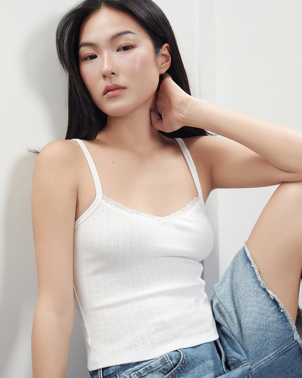 -Thiết kế: Áo 2 dây, cổ chữ V, viền ren nữ tính tinh tế