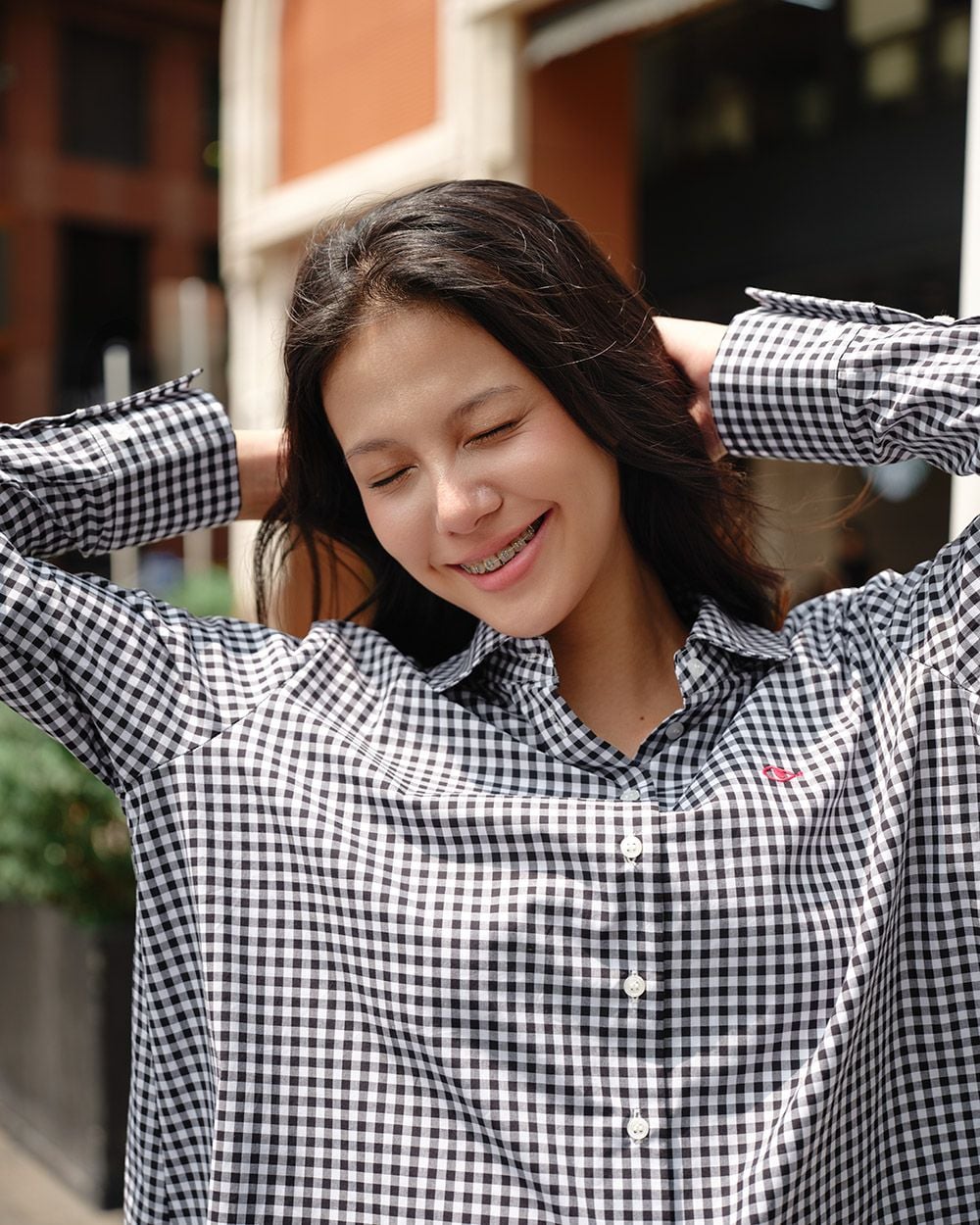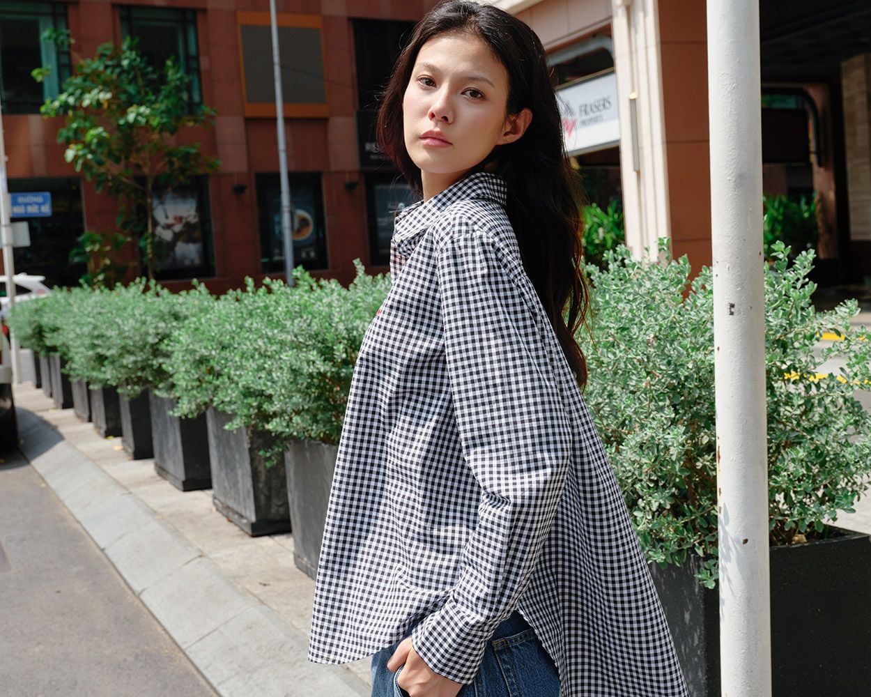 - Thiết kế: Áo sơ mi cổ penny, thân sau xoè với vạt đuôi tôm