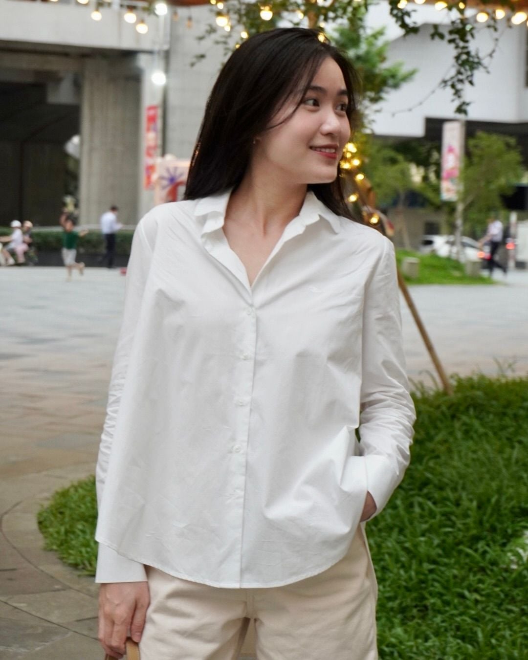 - Thiết kế: Áo sơ mi cổ penny, thân sau xoè với vạt đuôi tôm