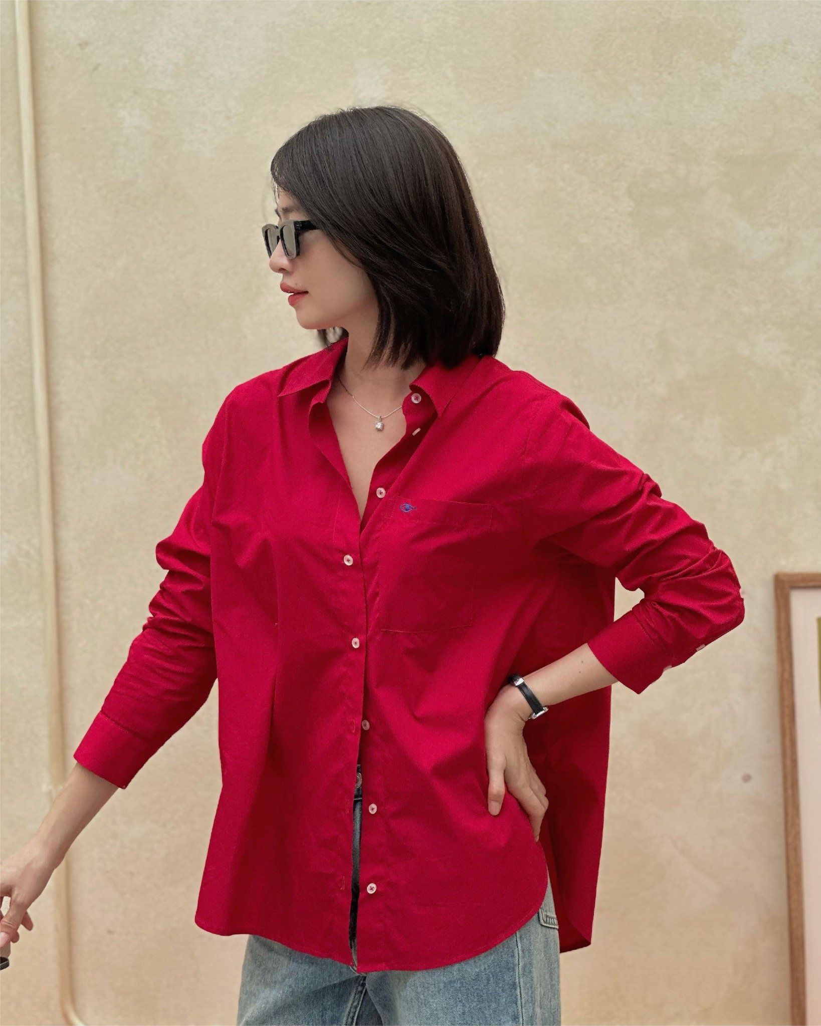 - Thiết kế: Lai áo bầu, túi vuông ở ngực trái, thân sau xếp nhún