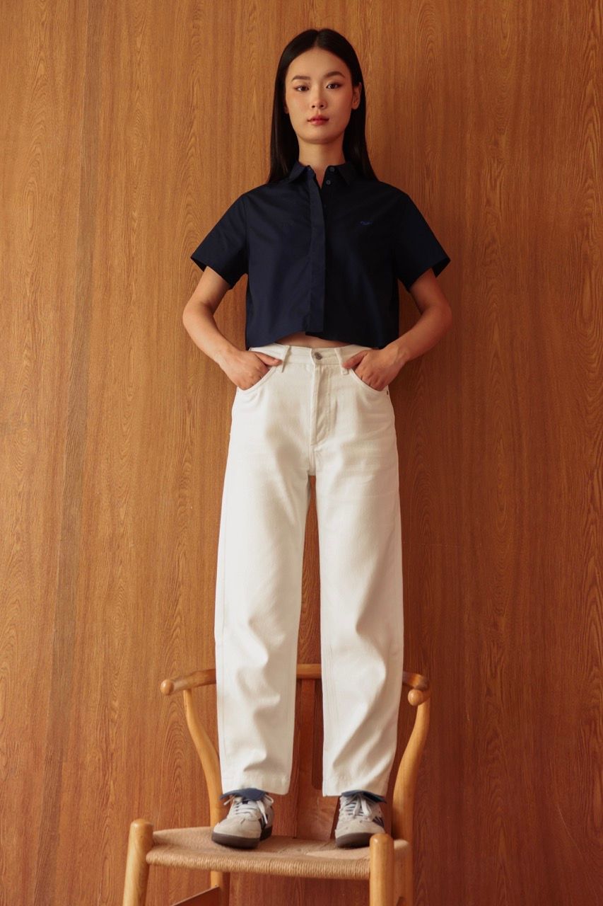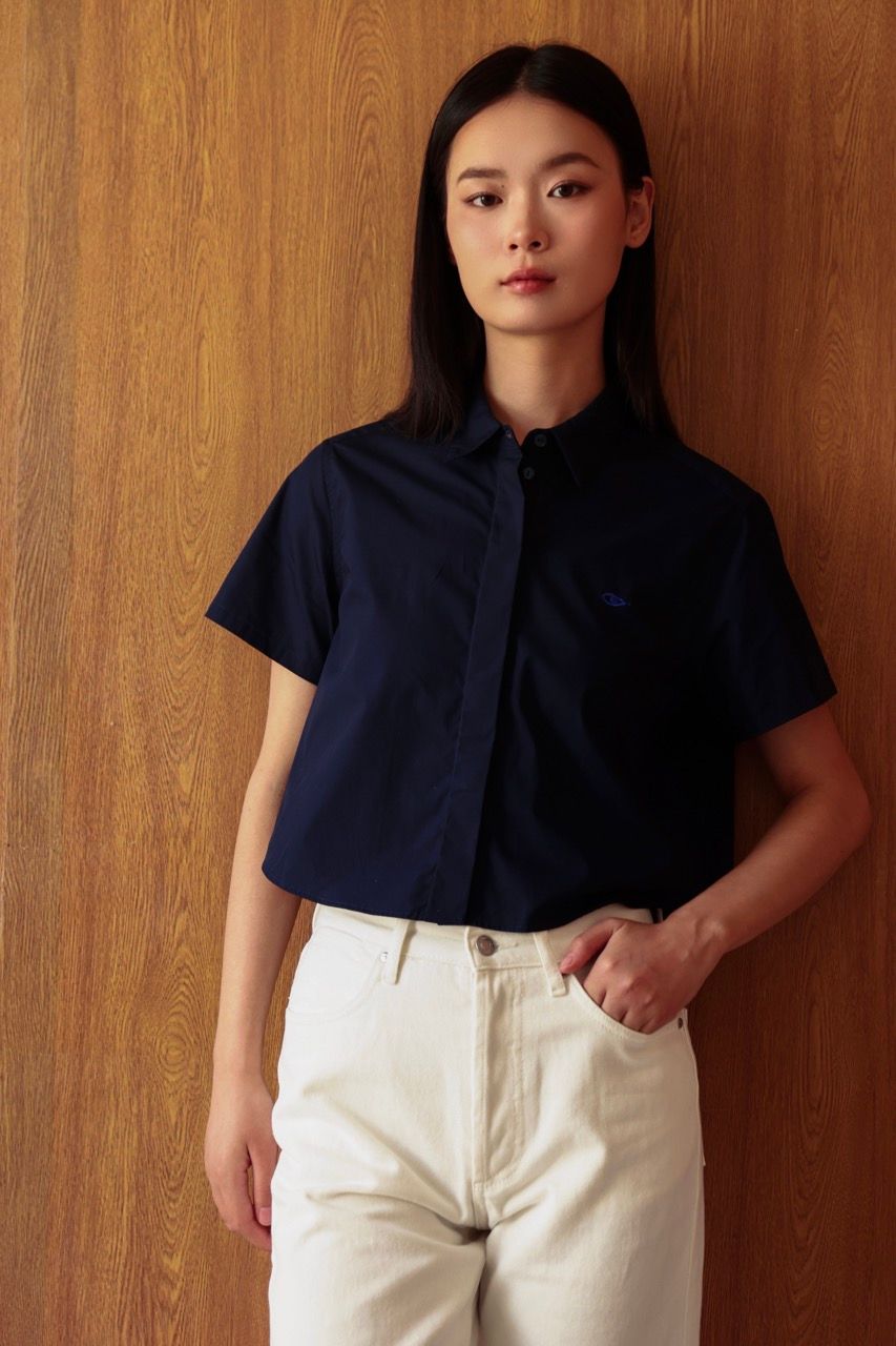 - Chi tiết: Thêu logo chỉ cotton trên ngực áo