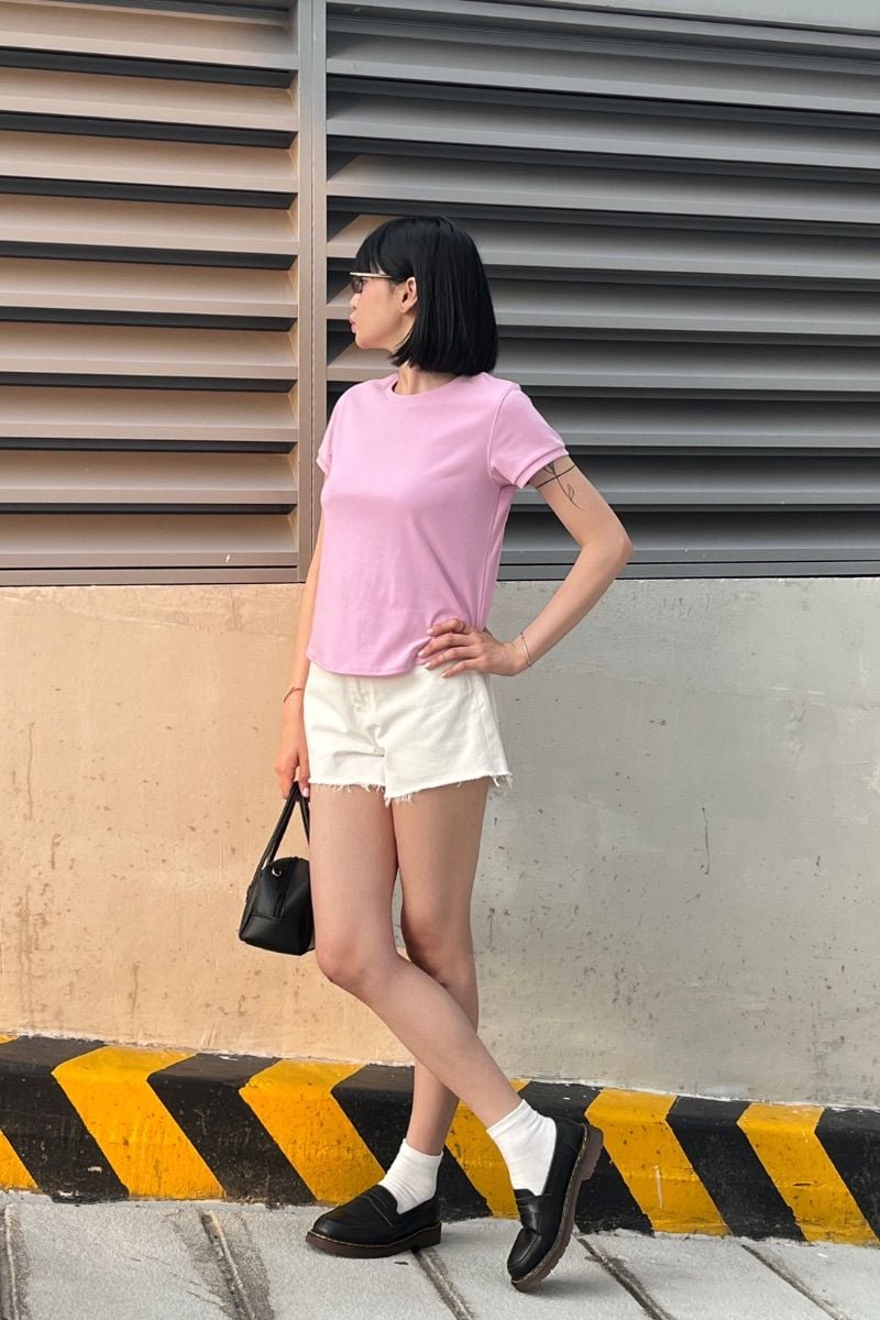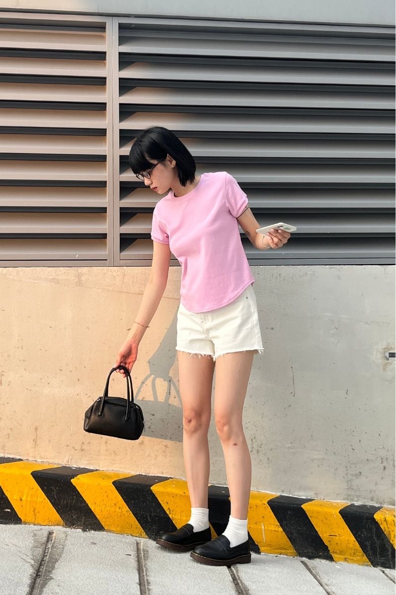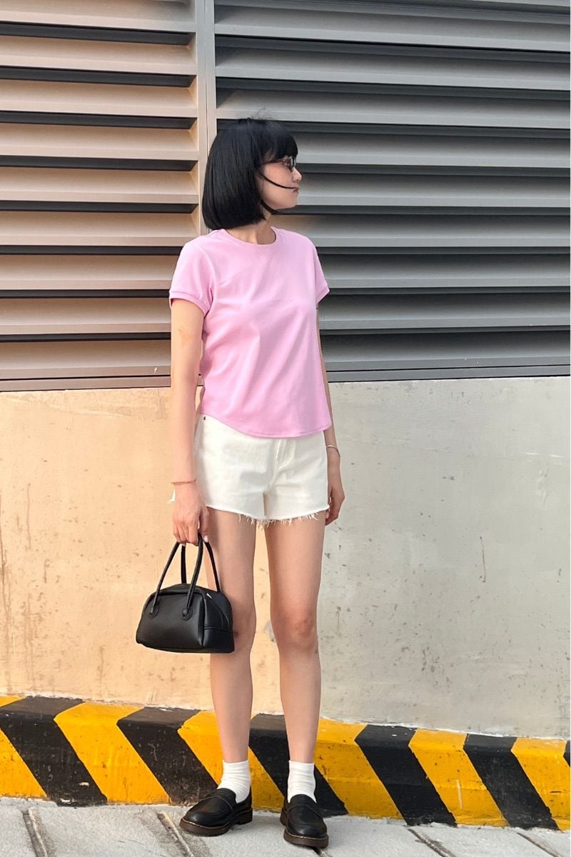 - Thiết kế: Áo thun trơn, tay ngắn, vạt bầu