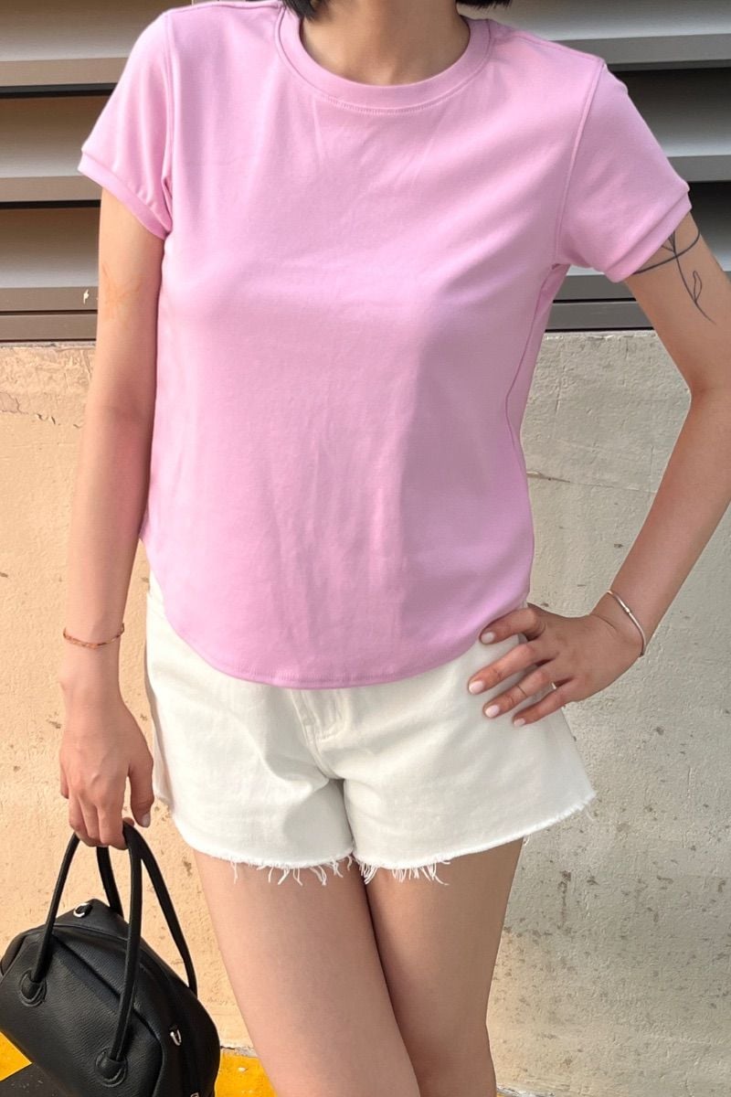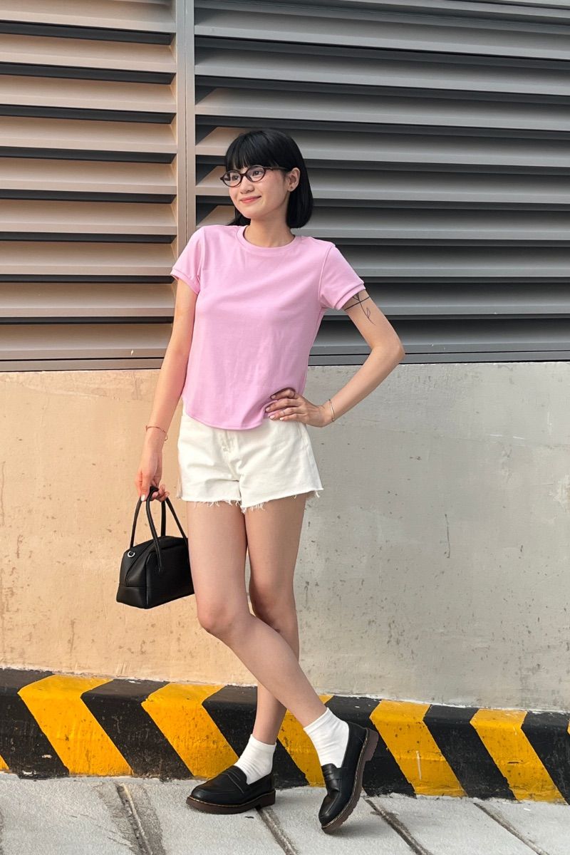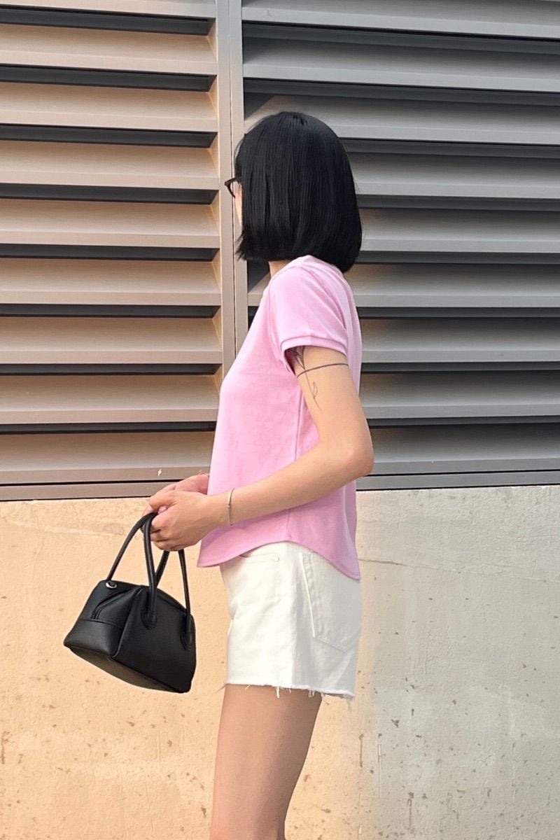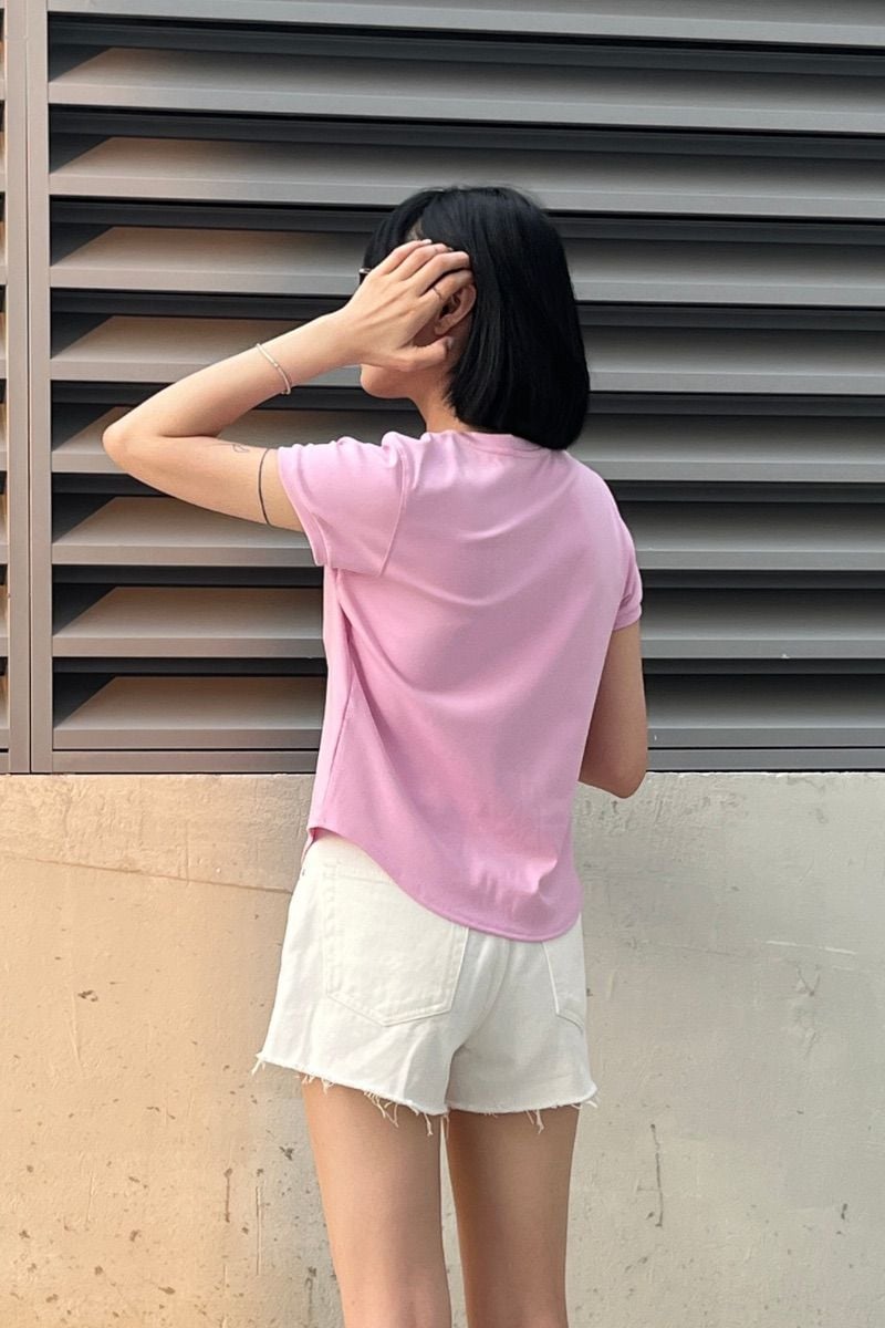 - Thiết kế: Áo thun trơn, tay ngắn, vạt bầu