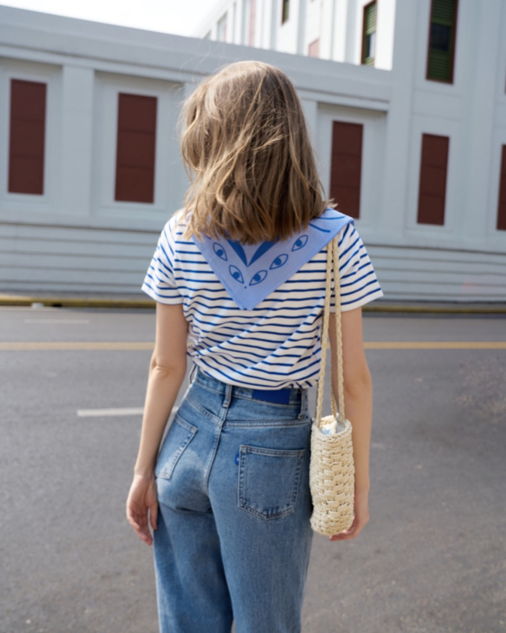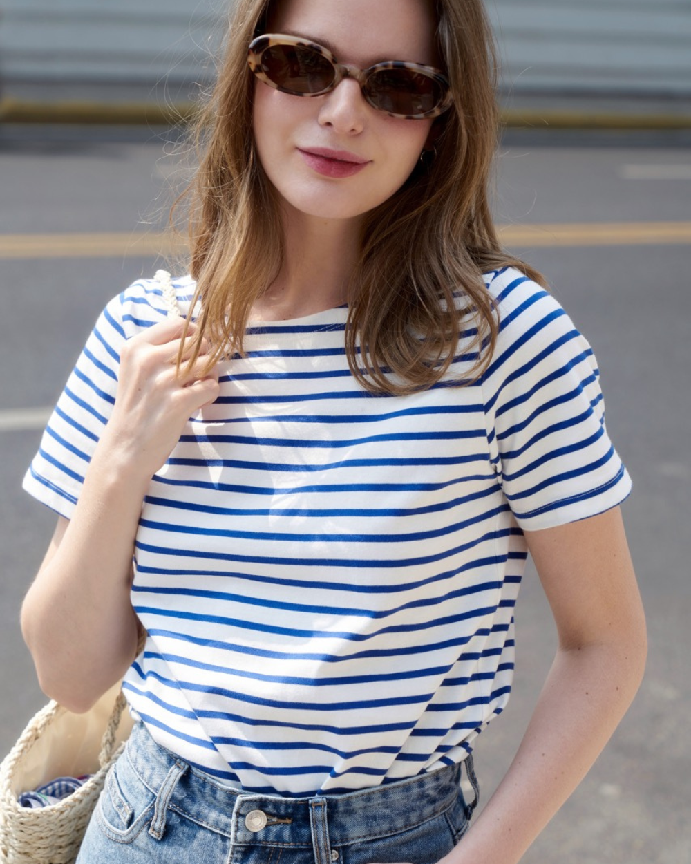 Áo thun sọc Number 6 T - Signature Blue Stripe