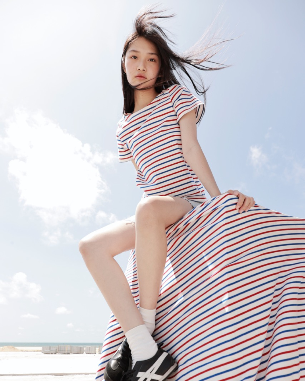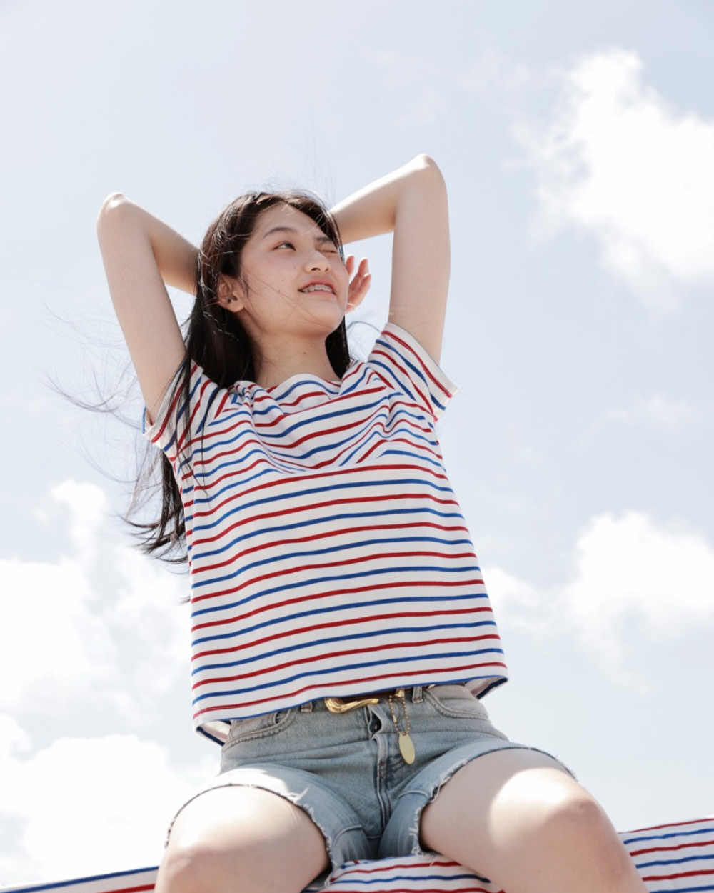- Thiết kế: Tay ngắn, cổ thuyền, độ dài ngang hông