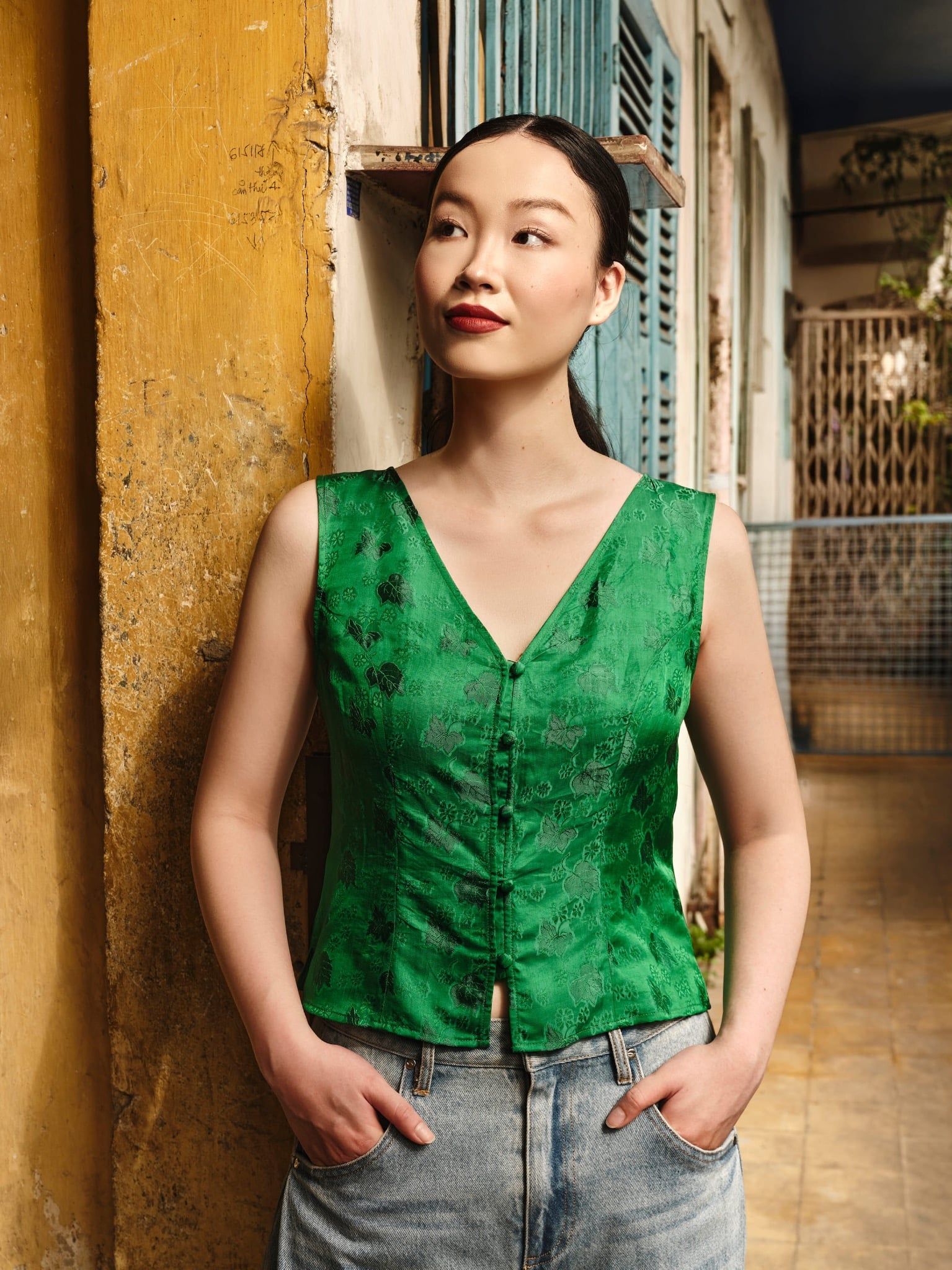 Áo V Neck Tơ Tằm - Green Silk