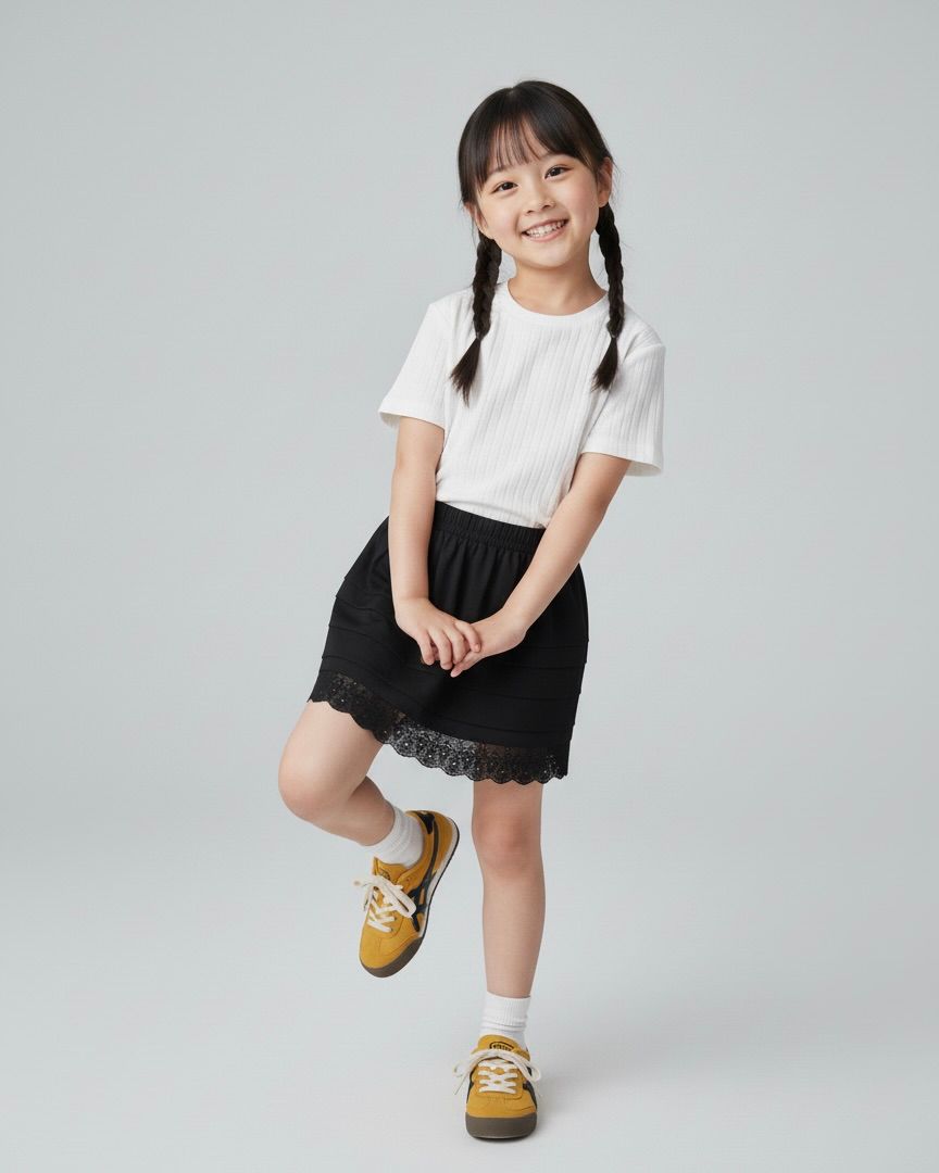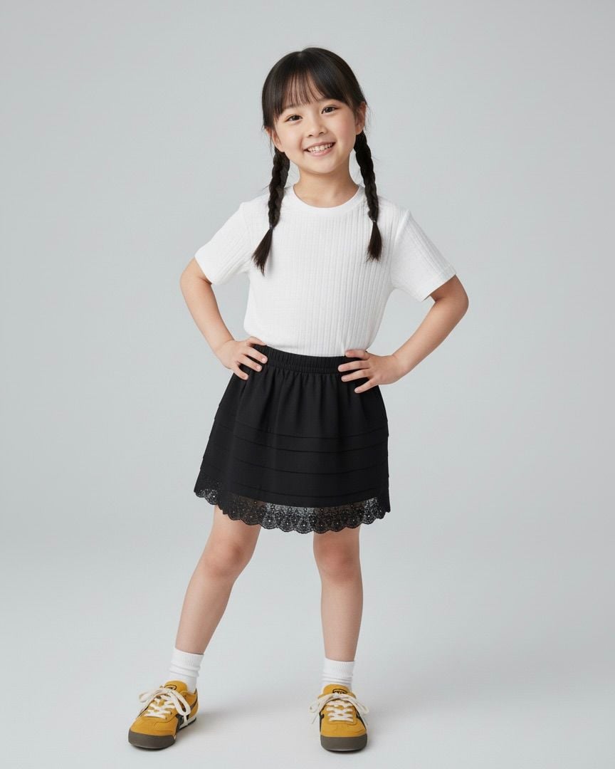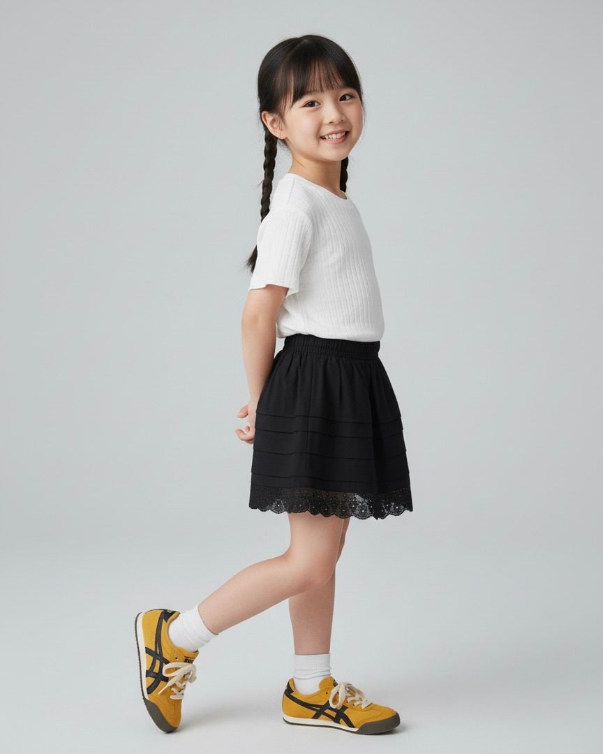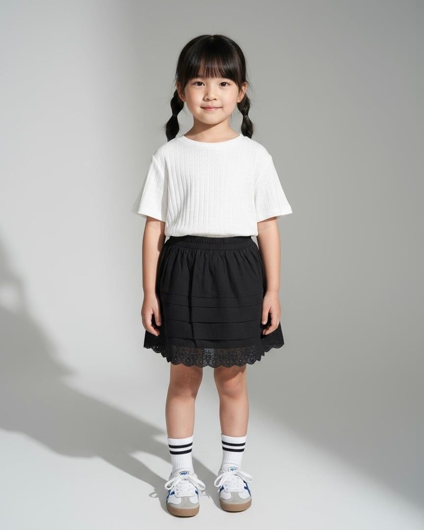 - Thiết kế: Lưng thun co dãn, 3 tầng bồng bềnh