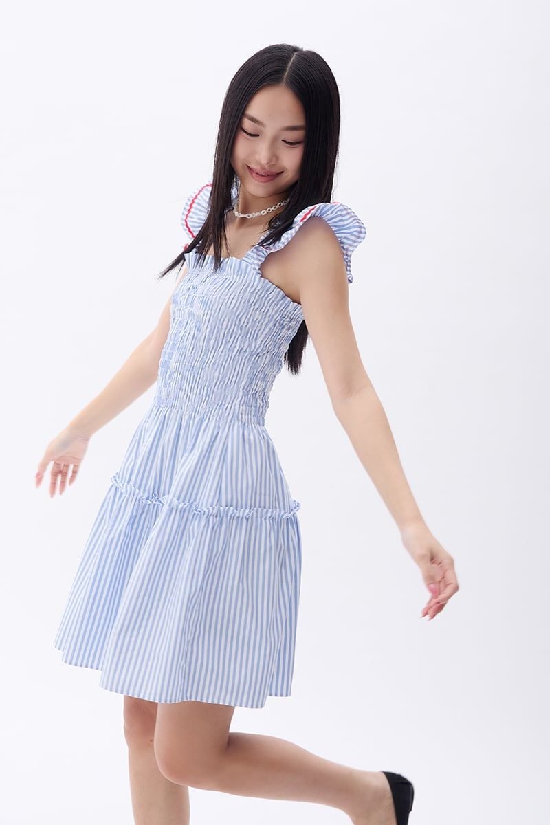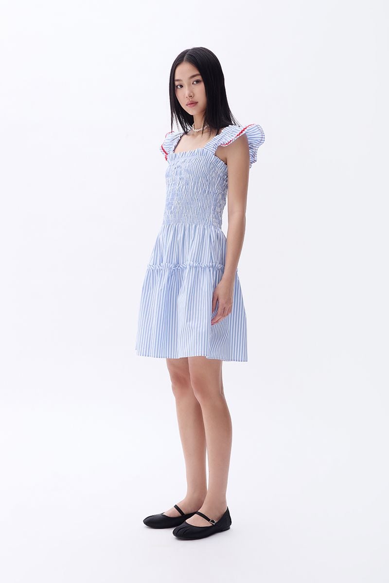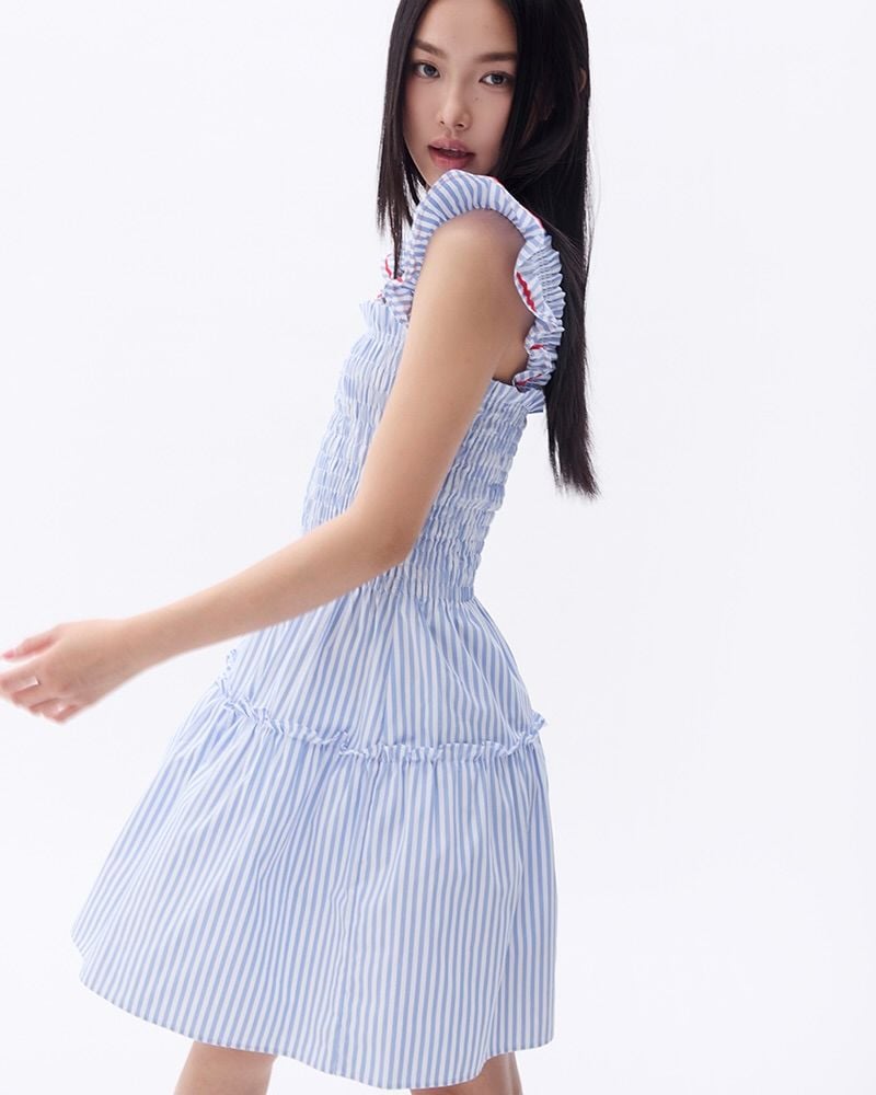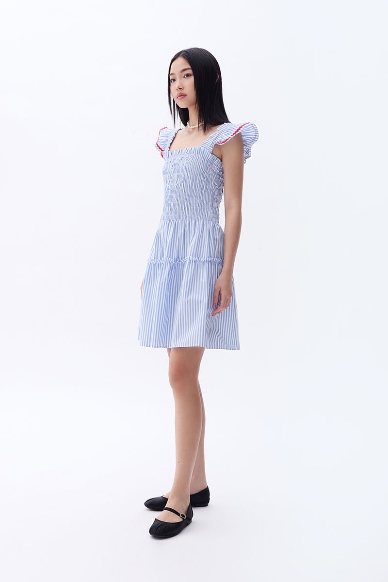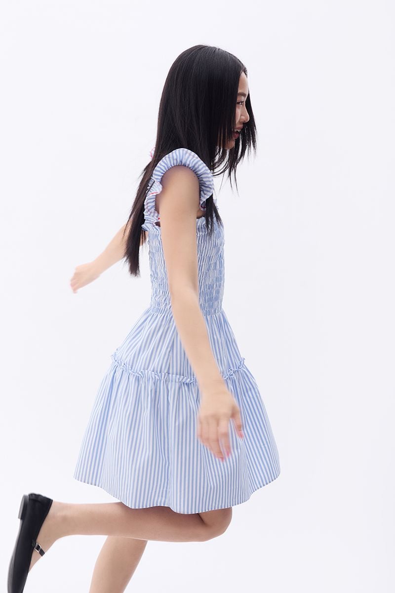 - Thiết kế: Đầm maxi cánh tiên dáng ngắn, có nhún bèo, thân đầm smocking ôm dáng