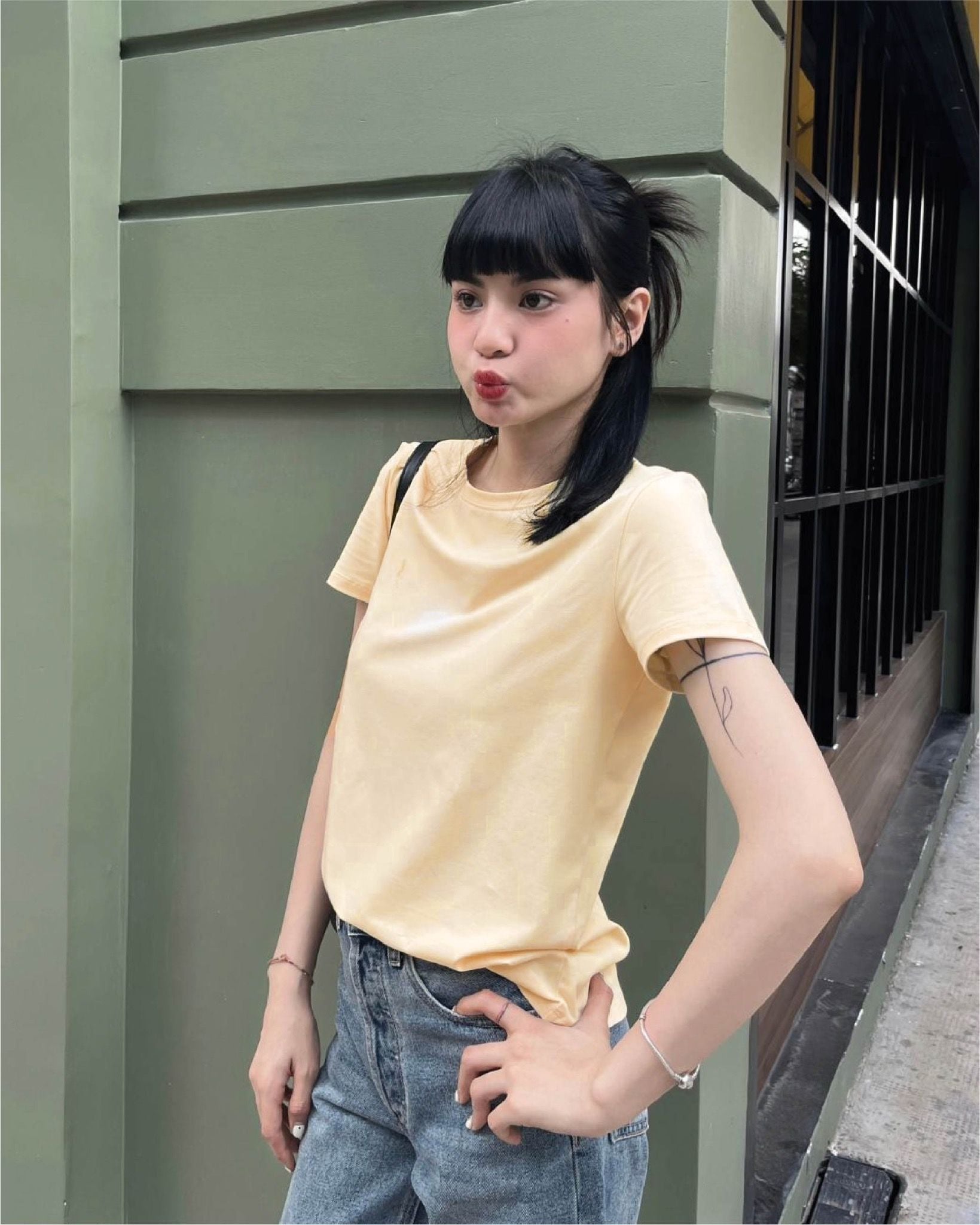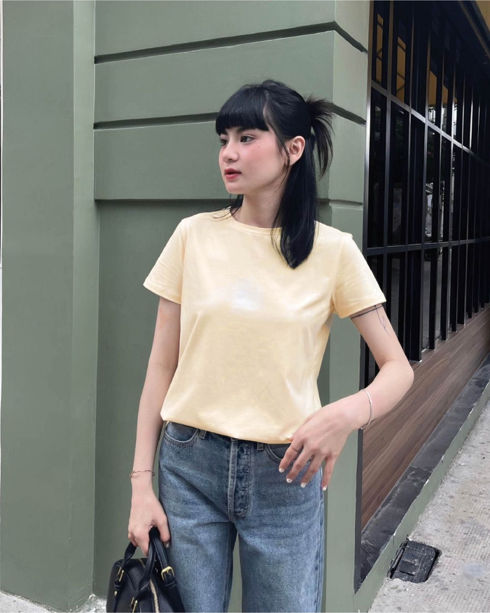 - Thiết kế: Áo thun trơn, tay ngắn, cổ tròn