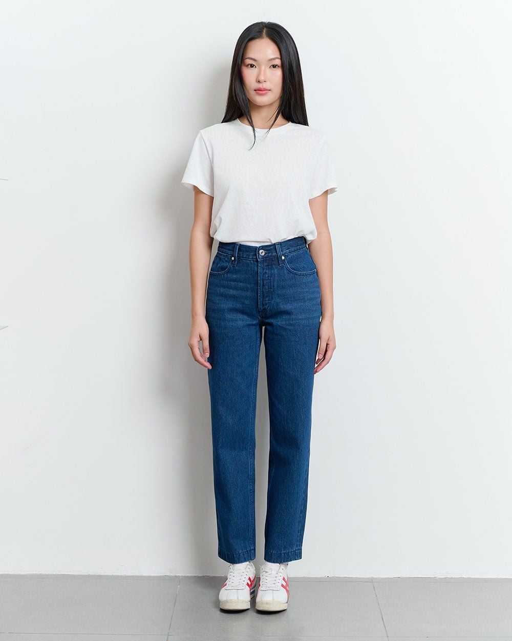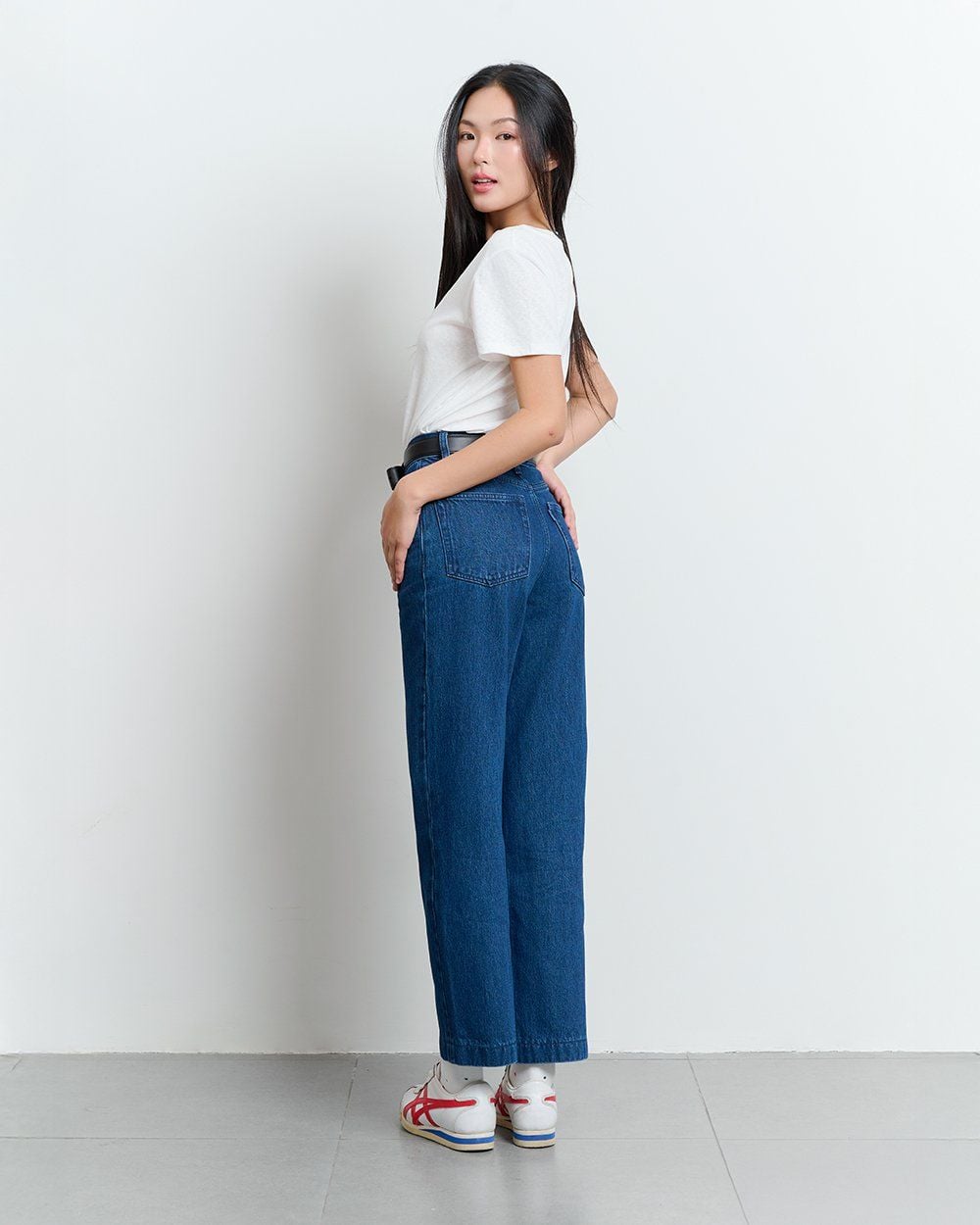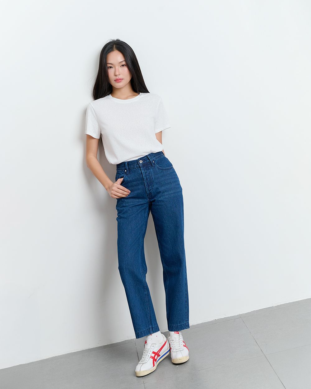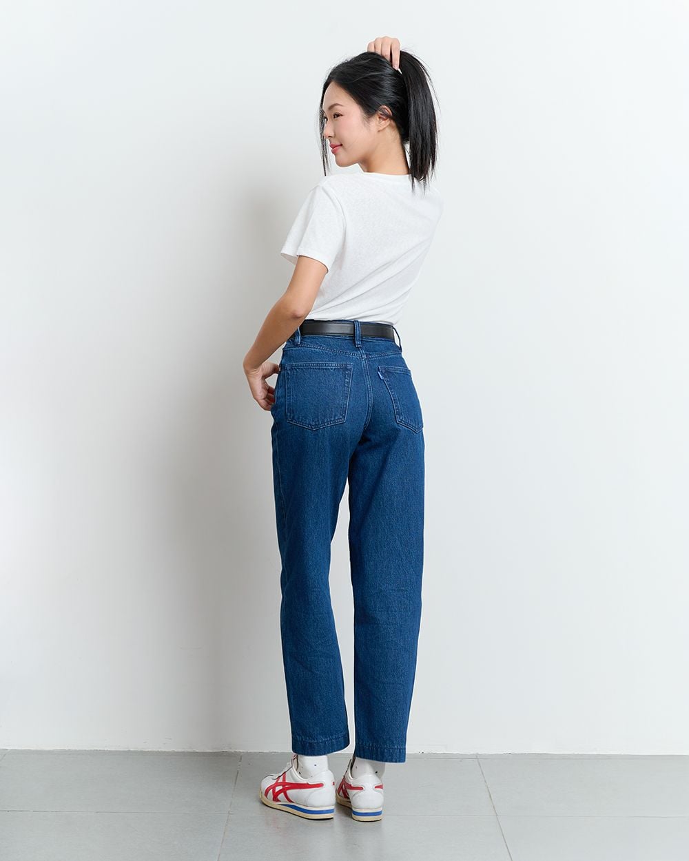 - Thiết kế: Cạp cao ôm hông, ống thẳng đứng