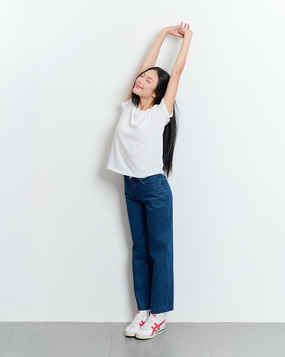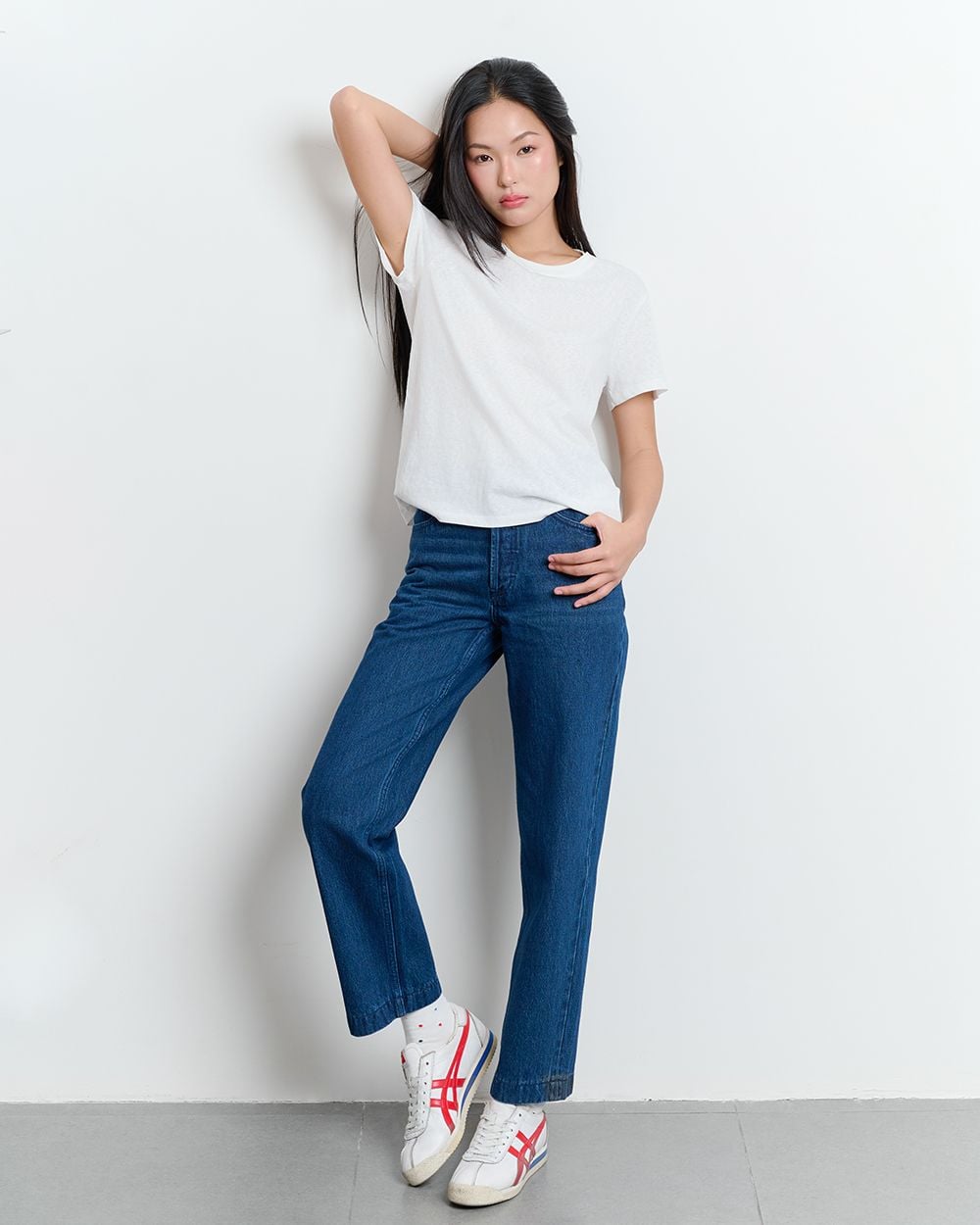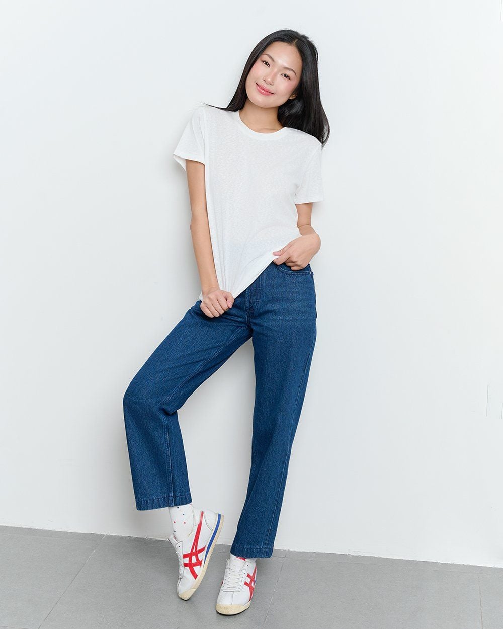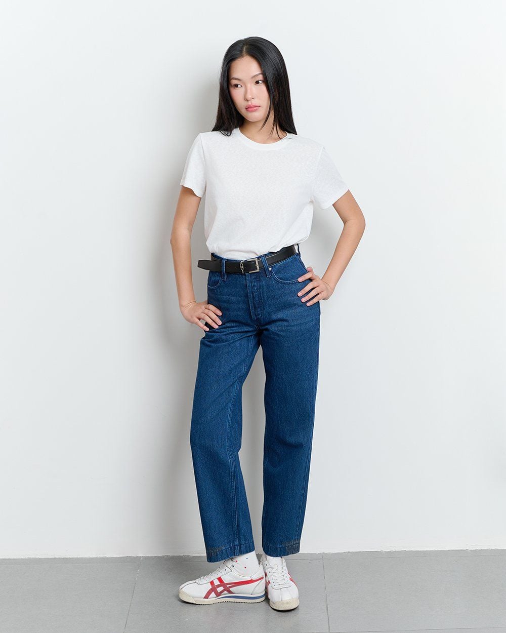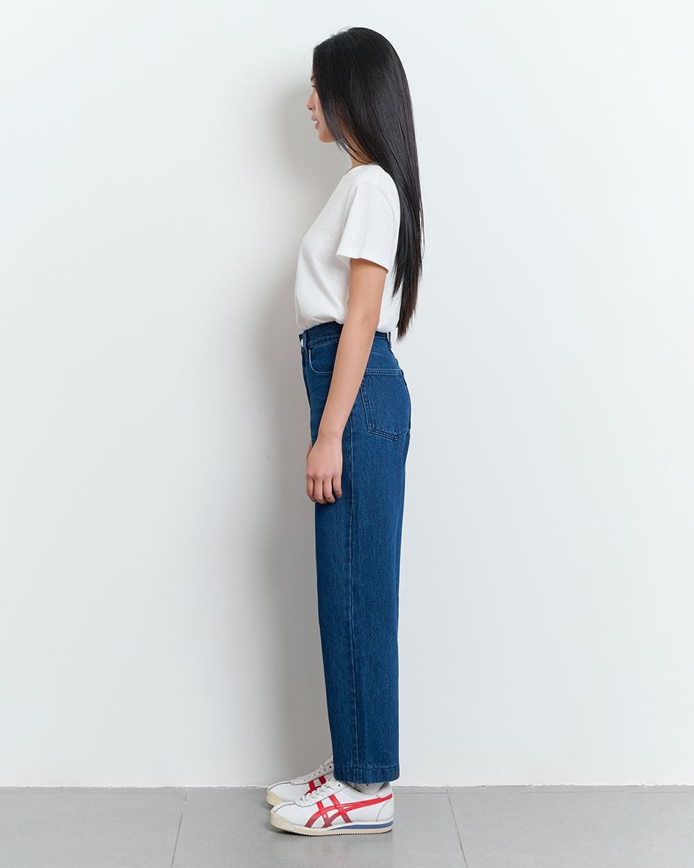 - Thiết kế: Cạp cao ôm hông, ống thẳng đứng