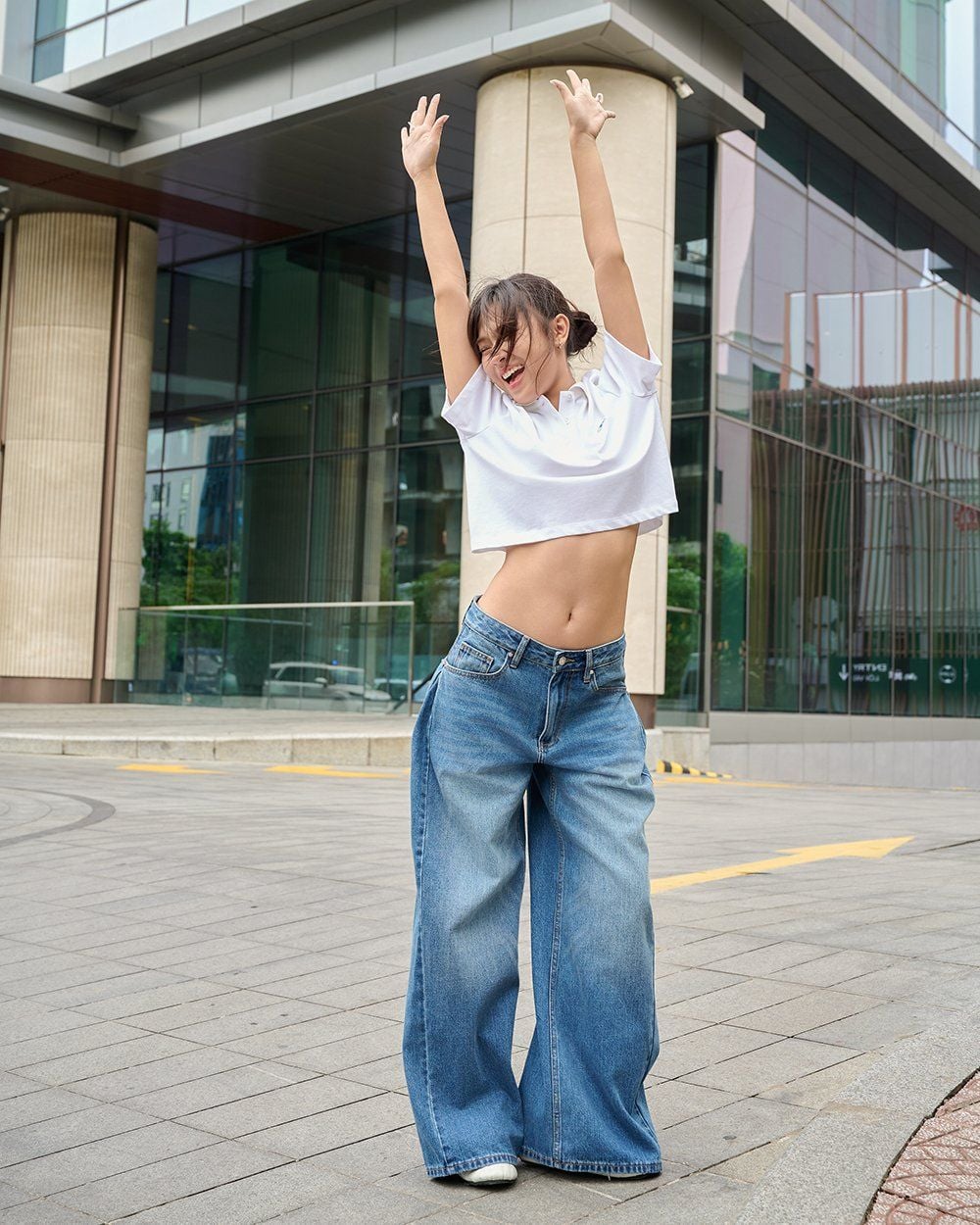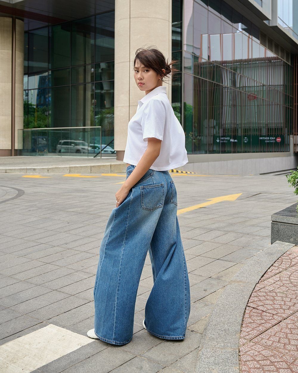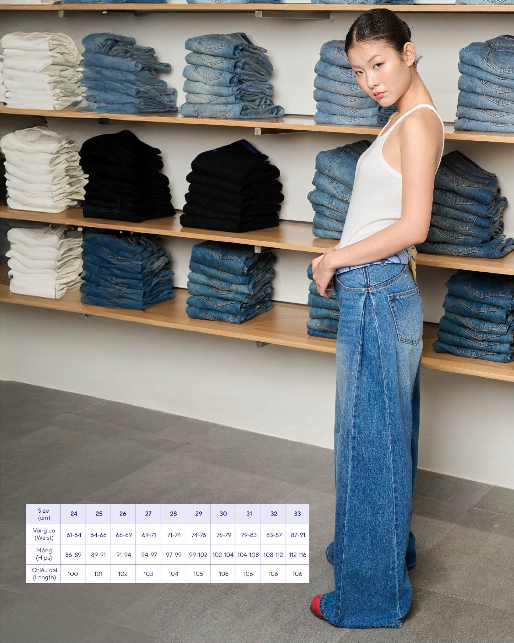 - Thiết kế: Quần ống rộng, cạp trễ, với 5 túi tiện dụng