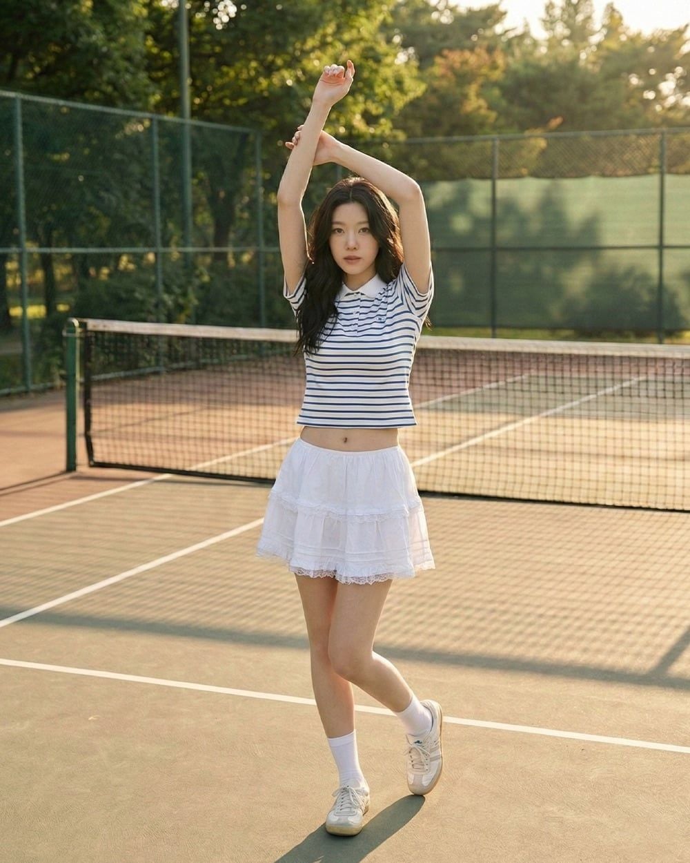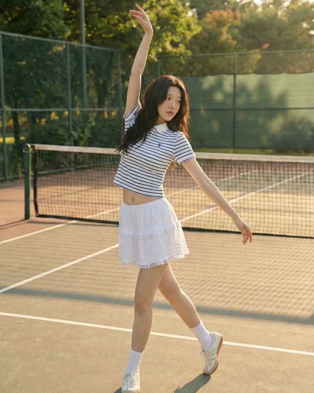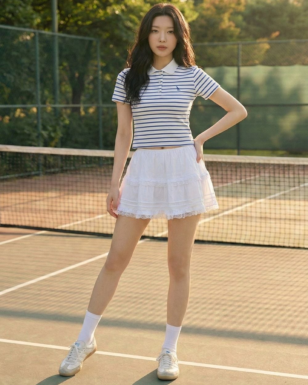 - Thiết kế: váy xoè lai có ren trang trí, có quần lót phía trong