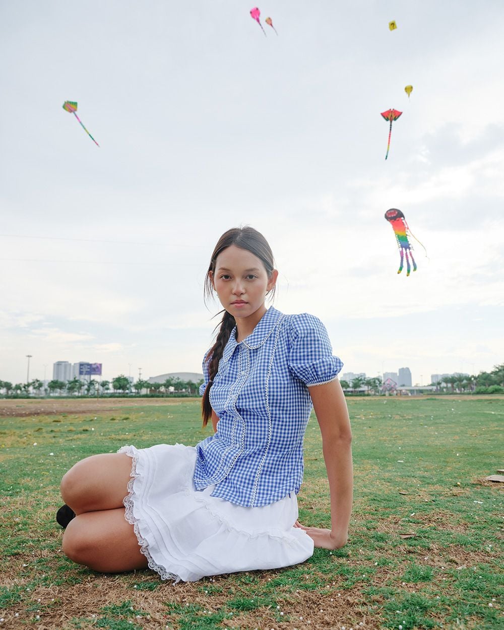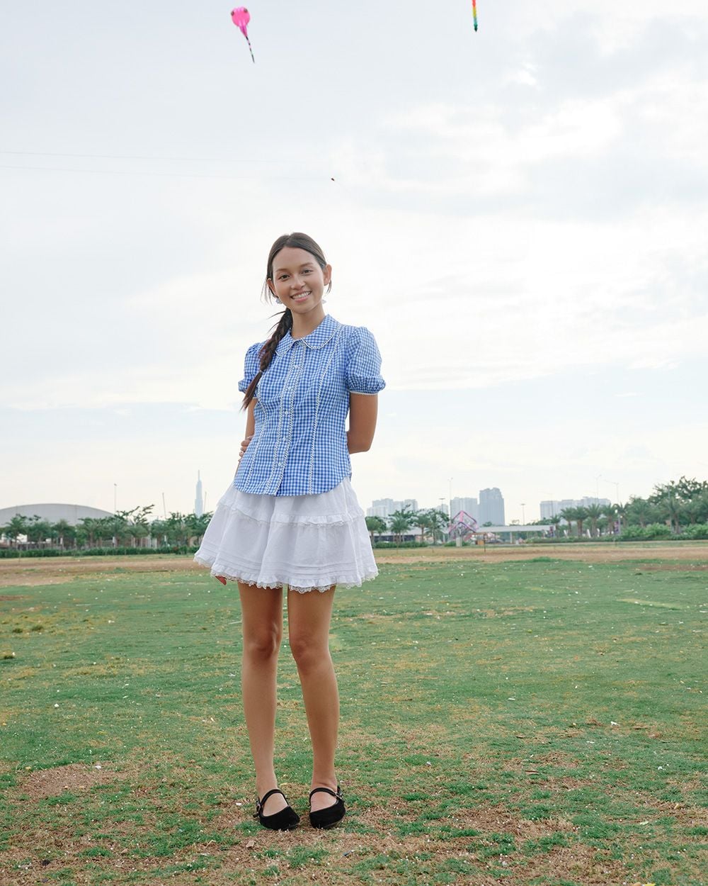 - Thiết kế: váy xoè lai có ren trang trí, có quần lót phía trong