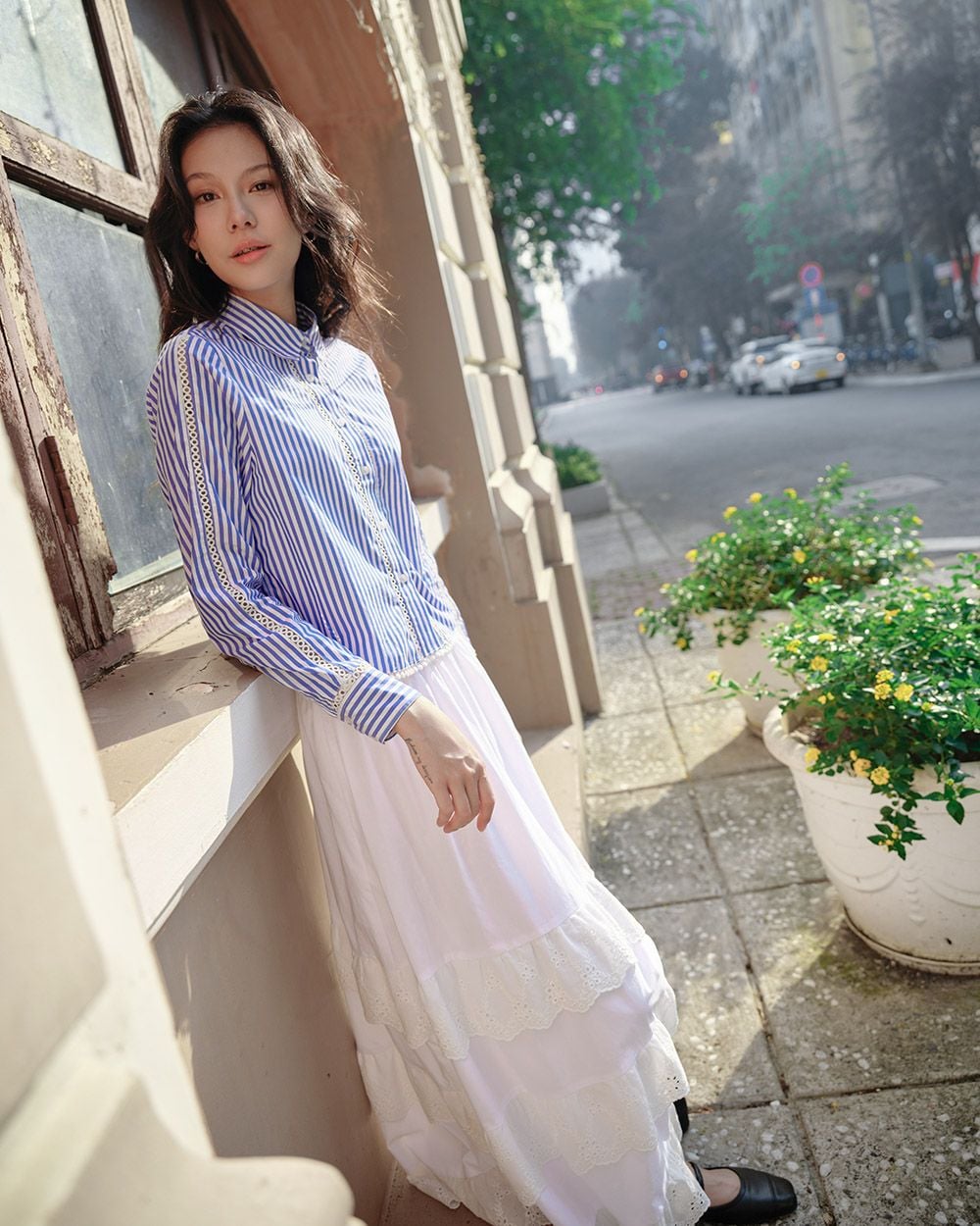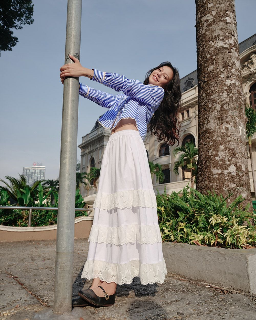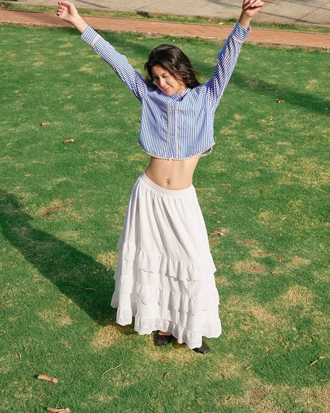 - Phom dáng: Váy xoè rộng, 3 tầng xoè